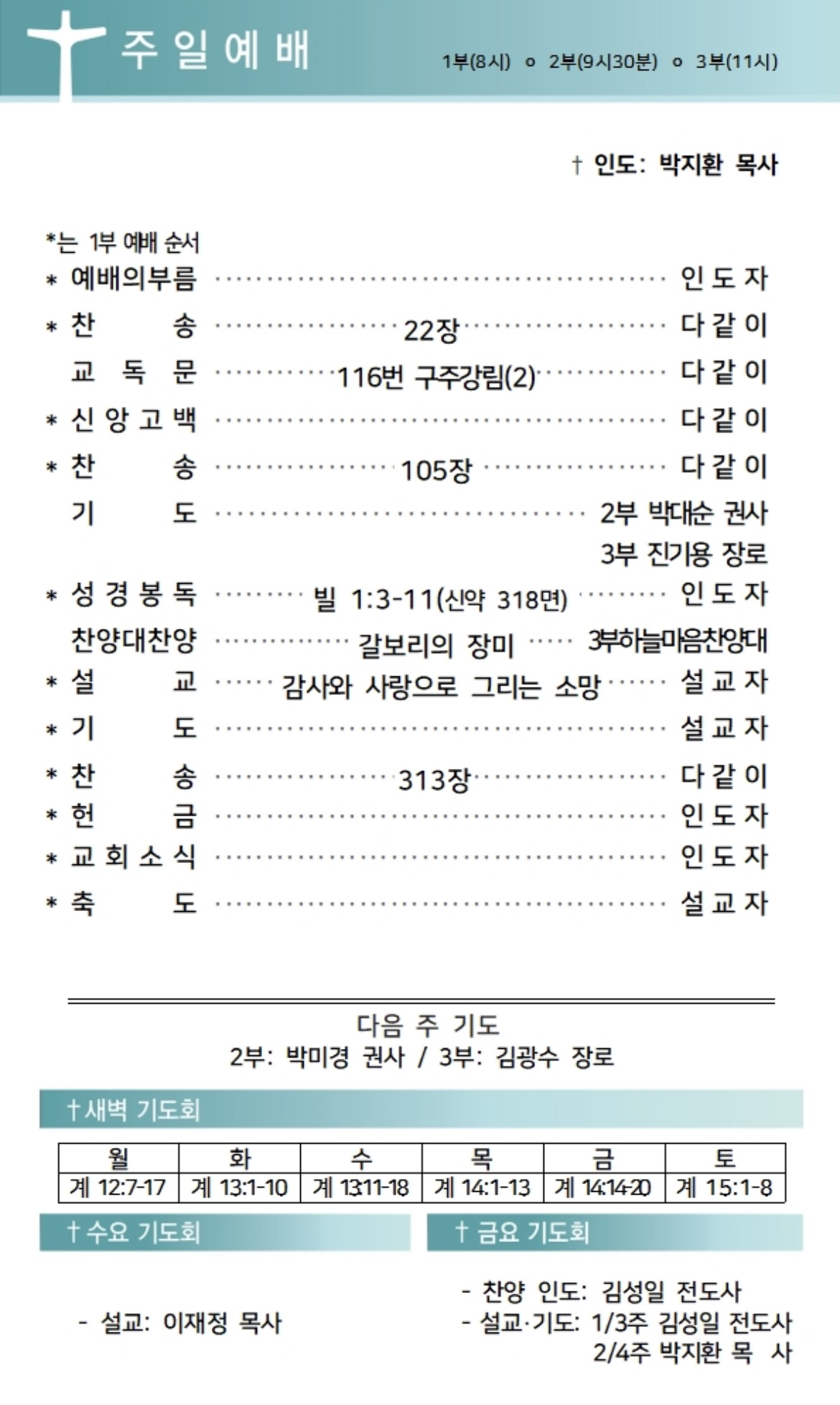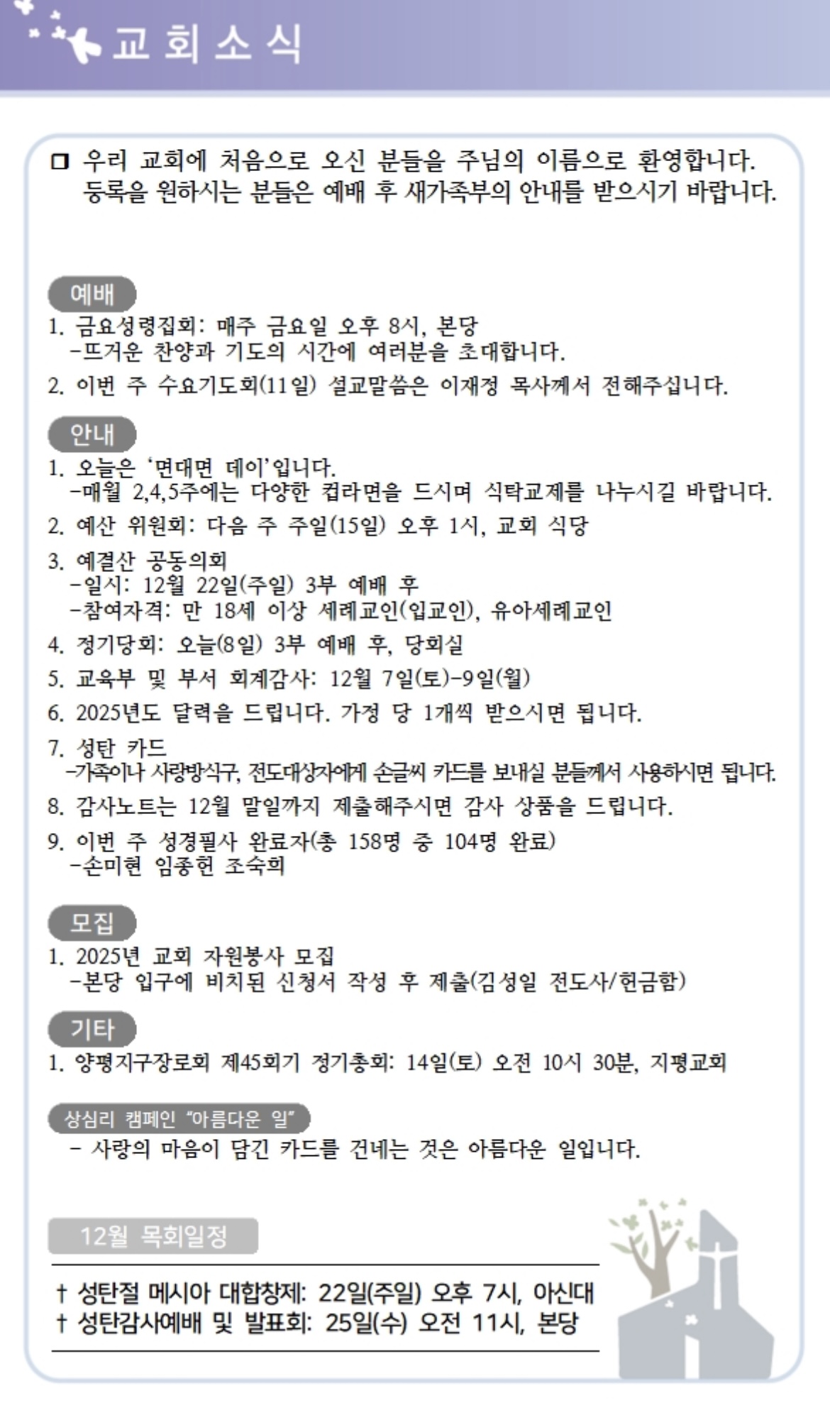 상심리교회 2024년 12월 8일 주보