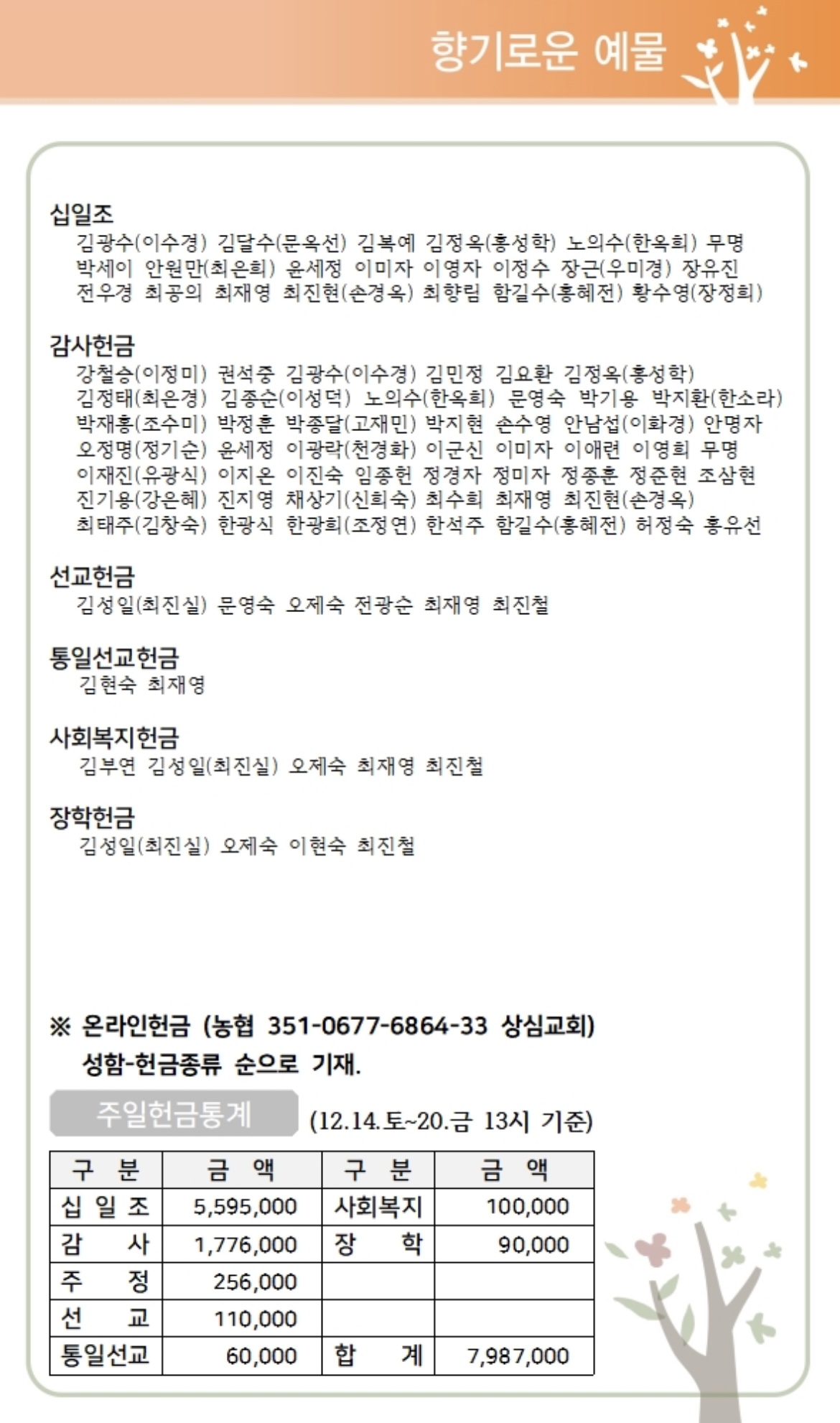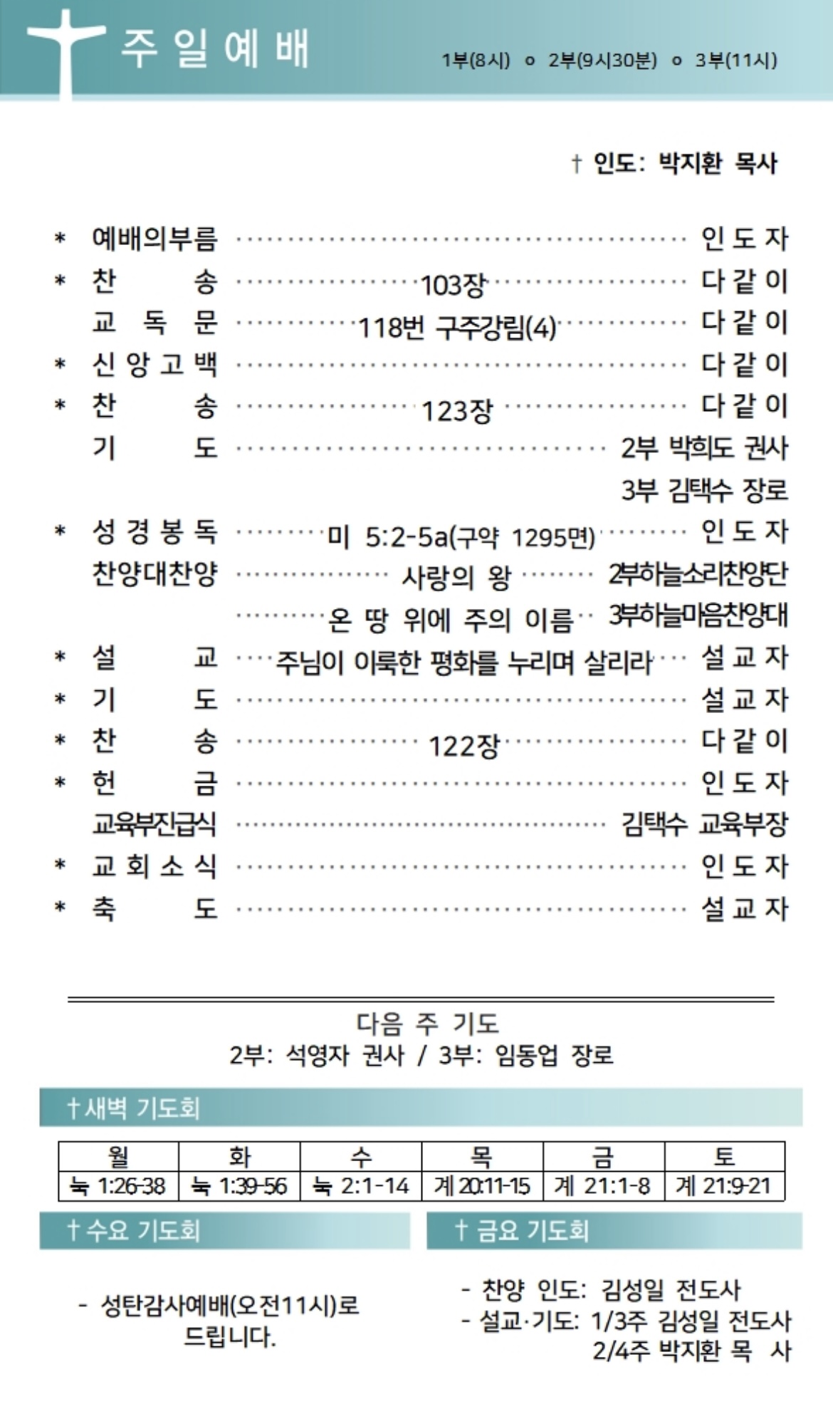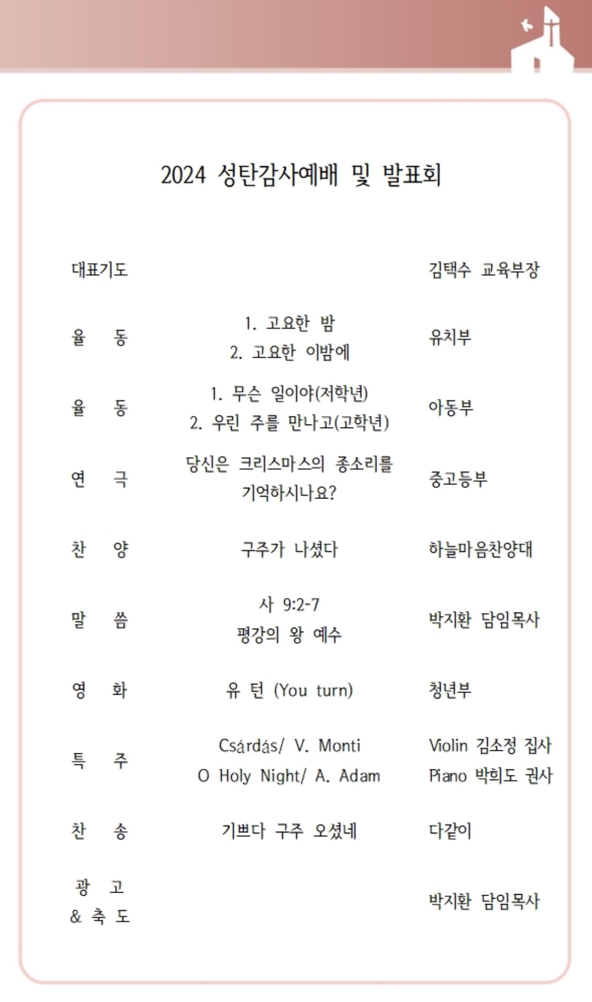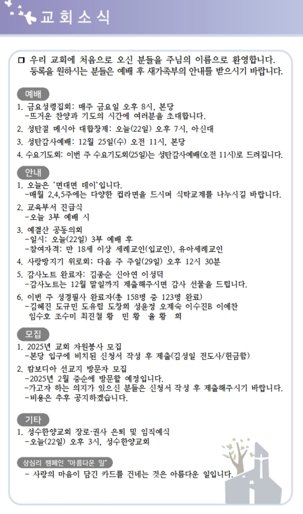 상심리교회 2024년 12월 22일 주보