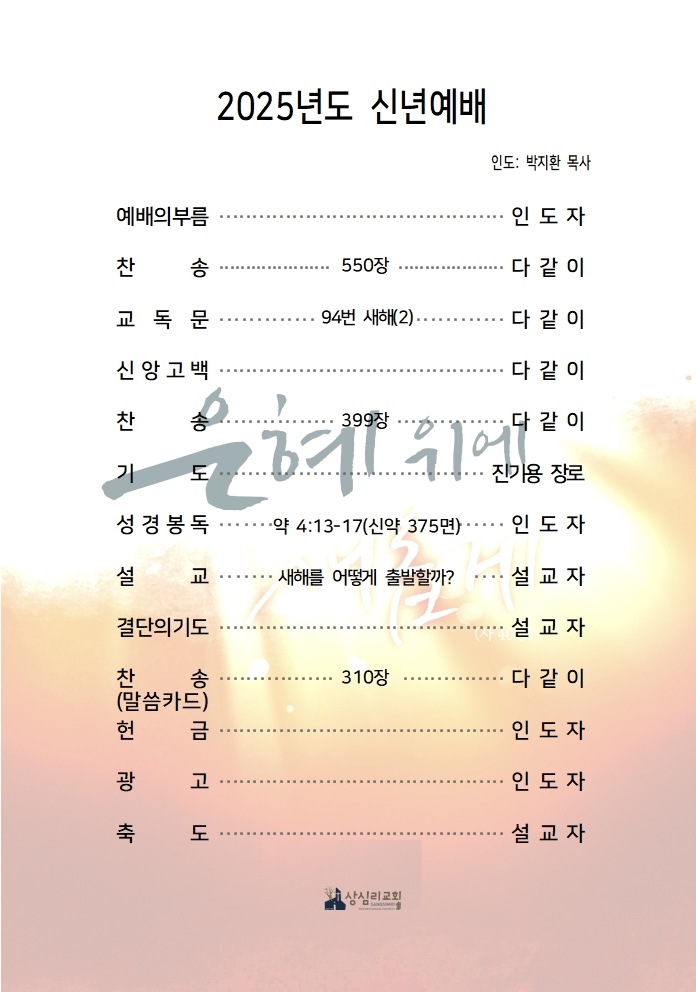 상심리교회 2025년 1월 1일 신년예배 주보