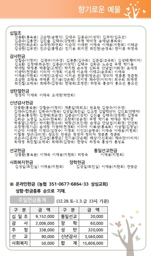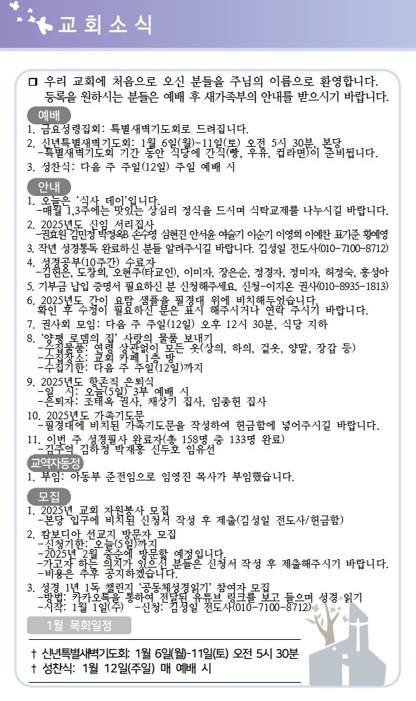 | 상심리교회 2025년 1월 1일 신년예배 주보 (0) | 2025.01.01 |