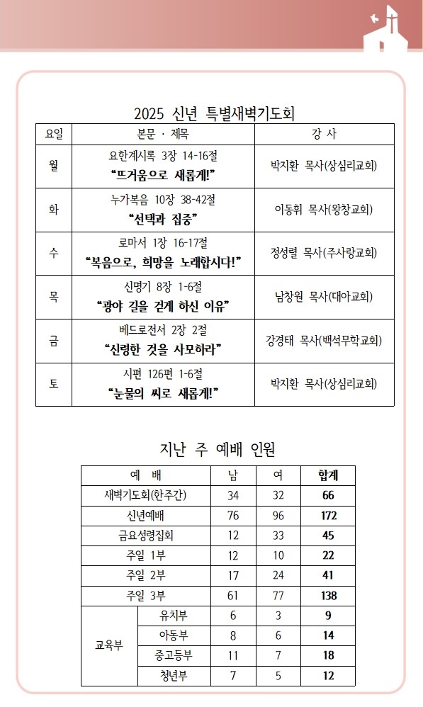 | 상심리교회 2025년 1월 19일 주보 (0) | 2025.01.18 |