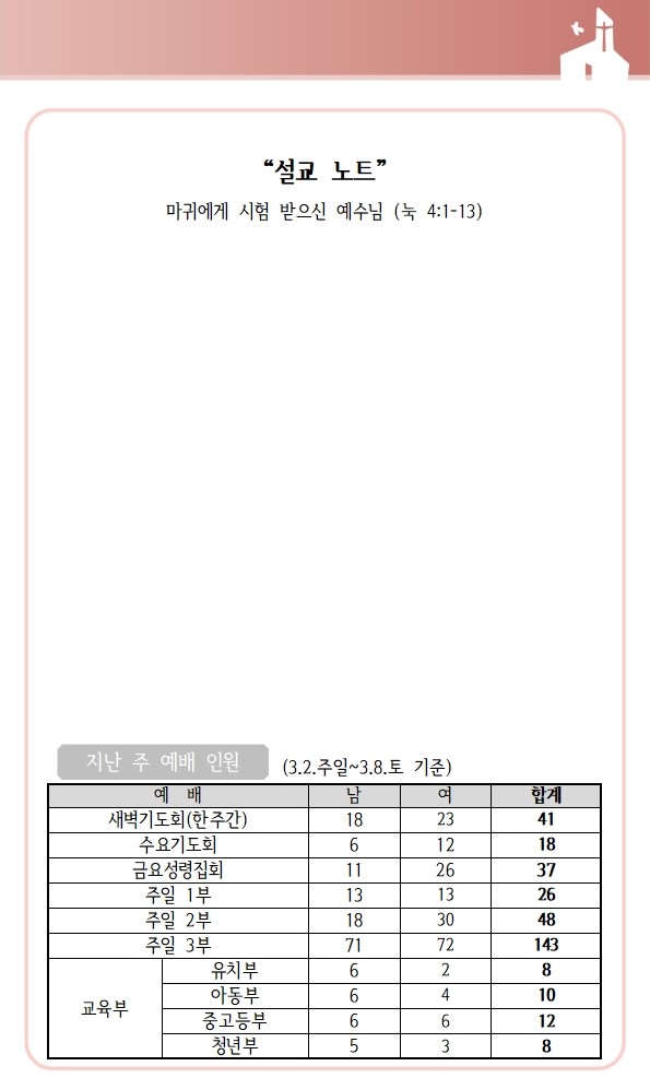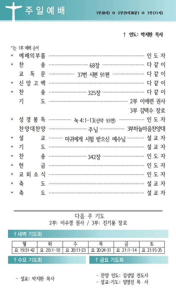 상심리교회 2025년 3월 9일 주보