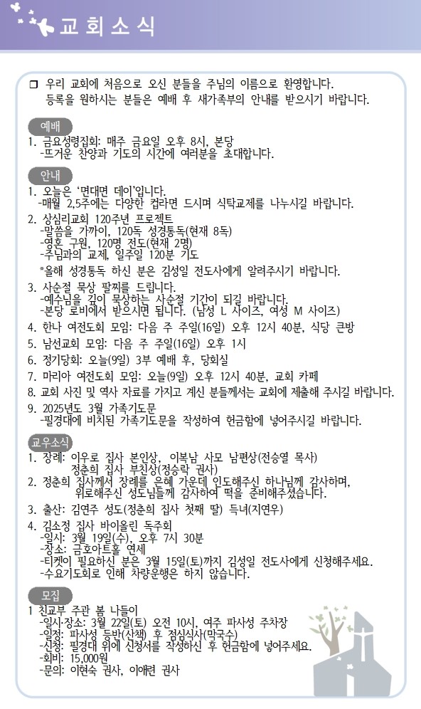 | 상심리교회 2025년 3월 2일 주보 (0) | 2025.03.01 |