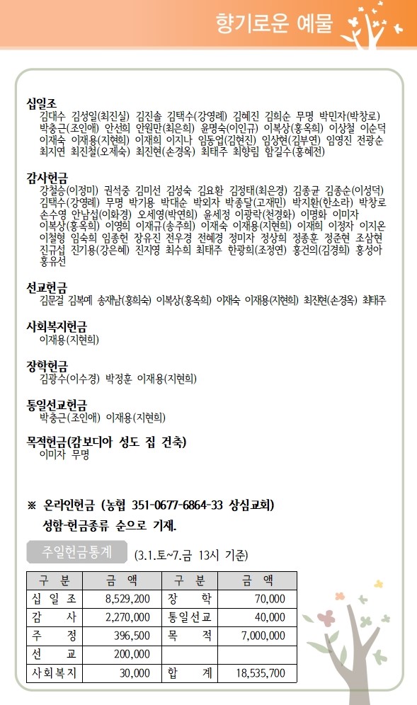 상심리교회 2025년 3월 9일 주보