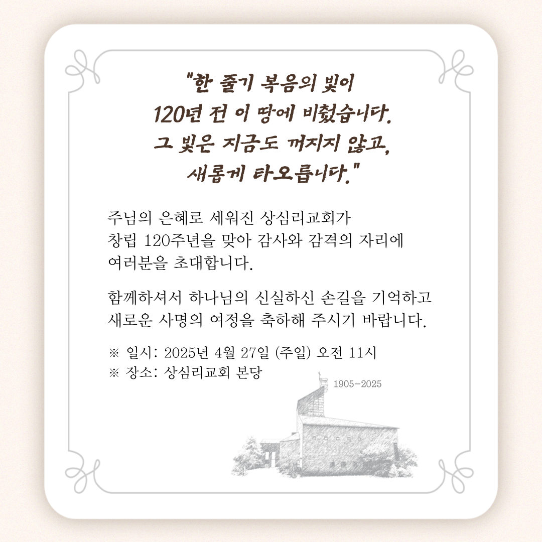 상심리교회 창립 120주년 초청장