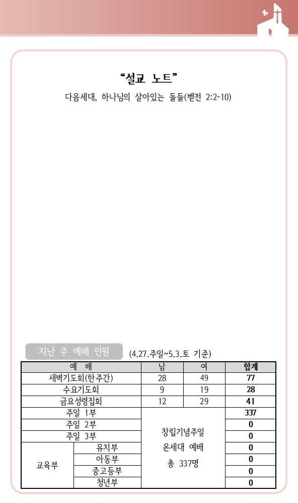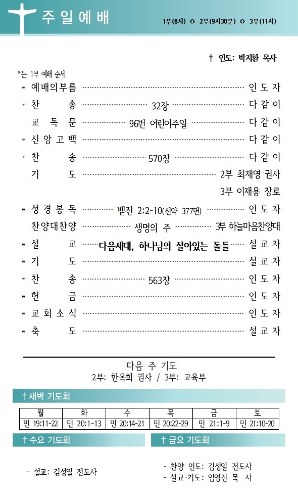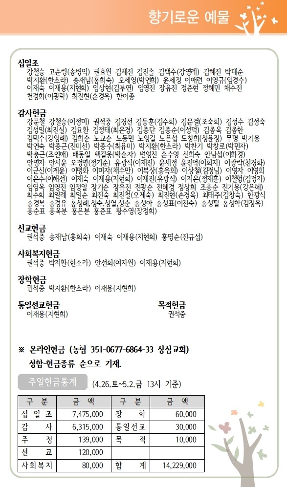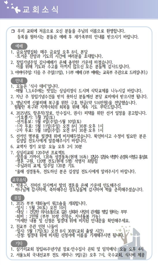 상심리교회 2025년 5월 4일 주보