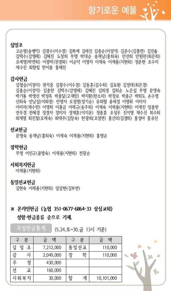 상심리교회 2025년 6월 1일 주보