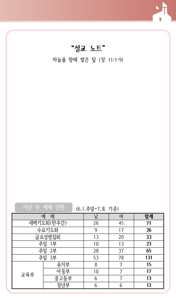 상심리교회 2025년 6월 8일 주보