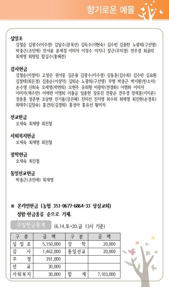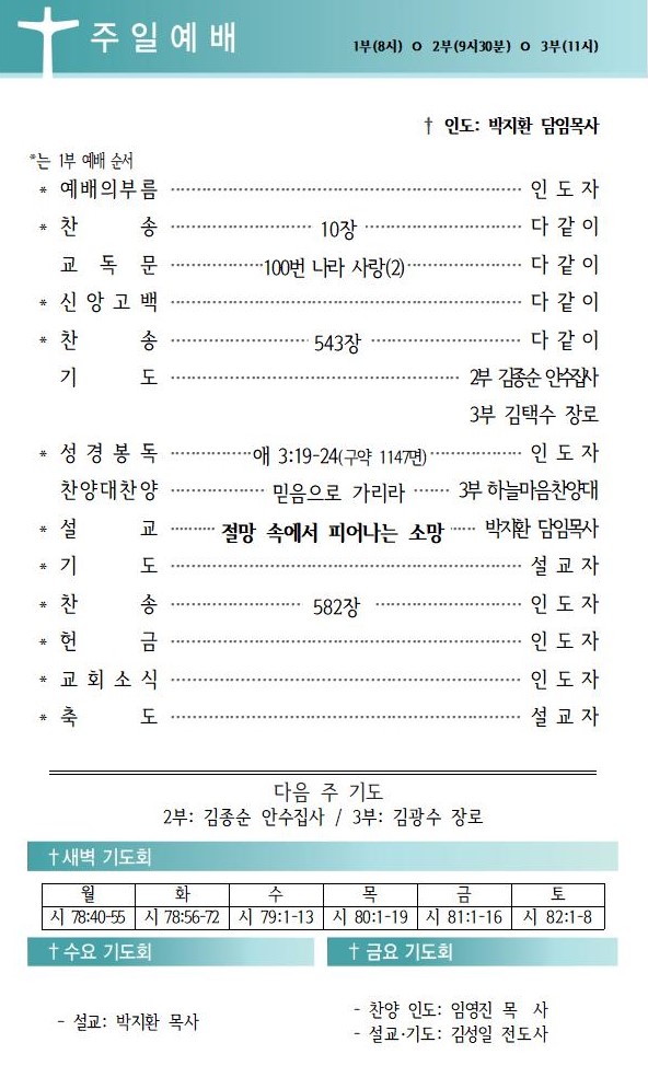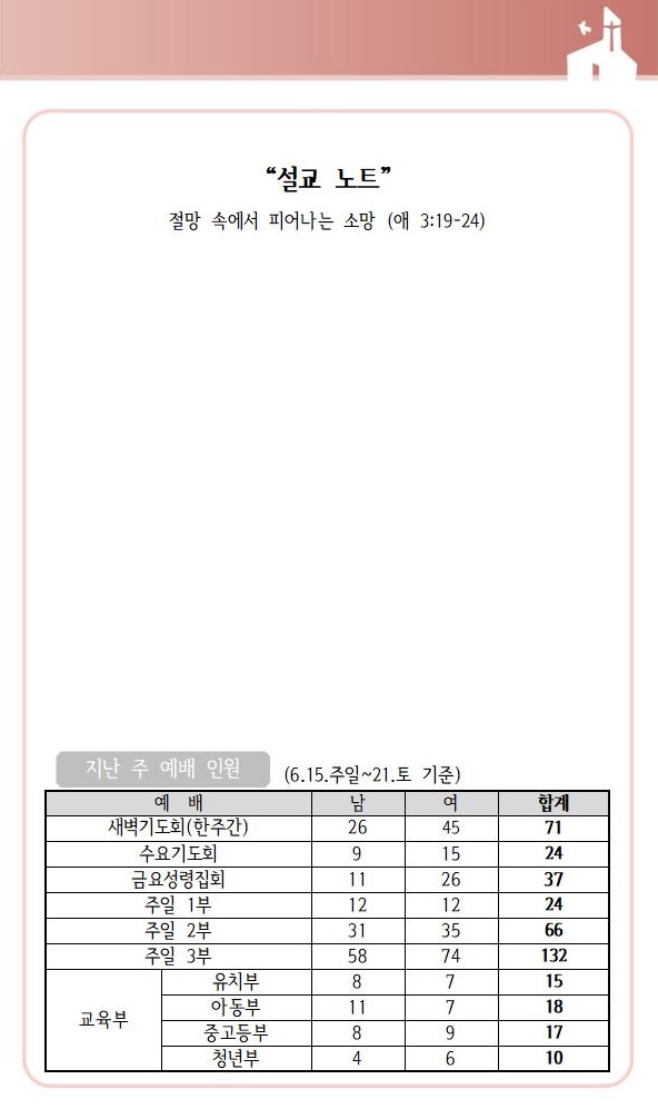 상심리교회 2025년 6월 22일 주보
