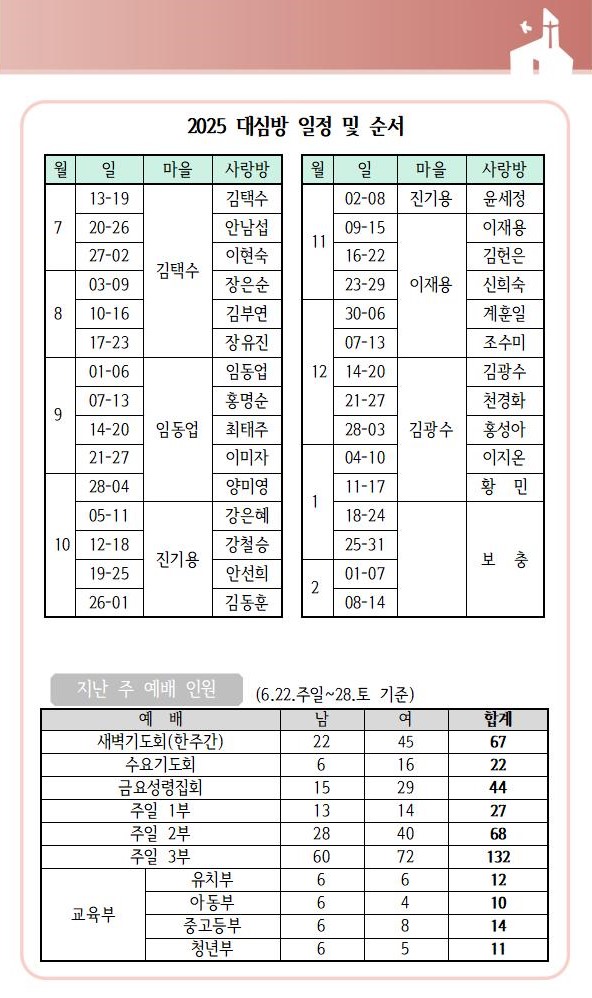 상심리교회 2025년 6월 29일 주보