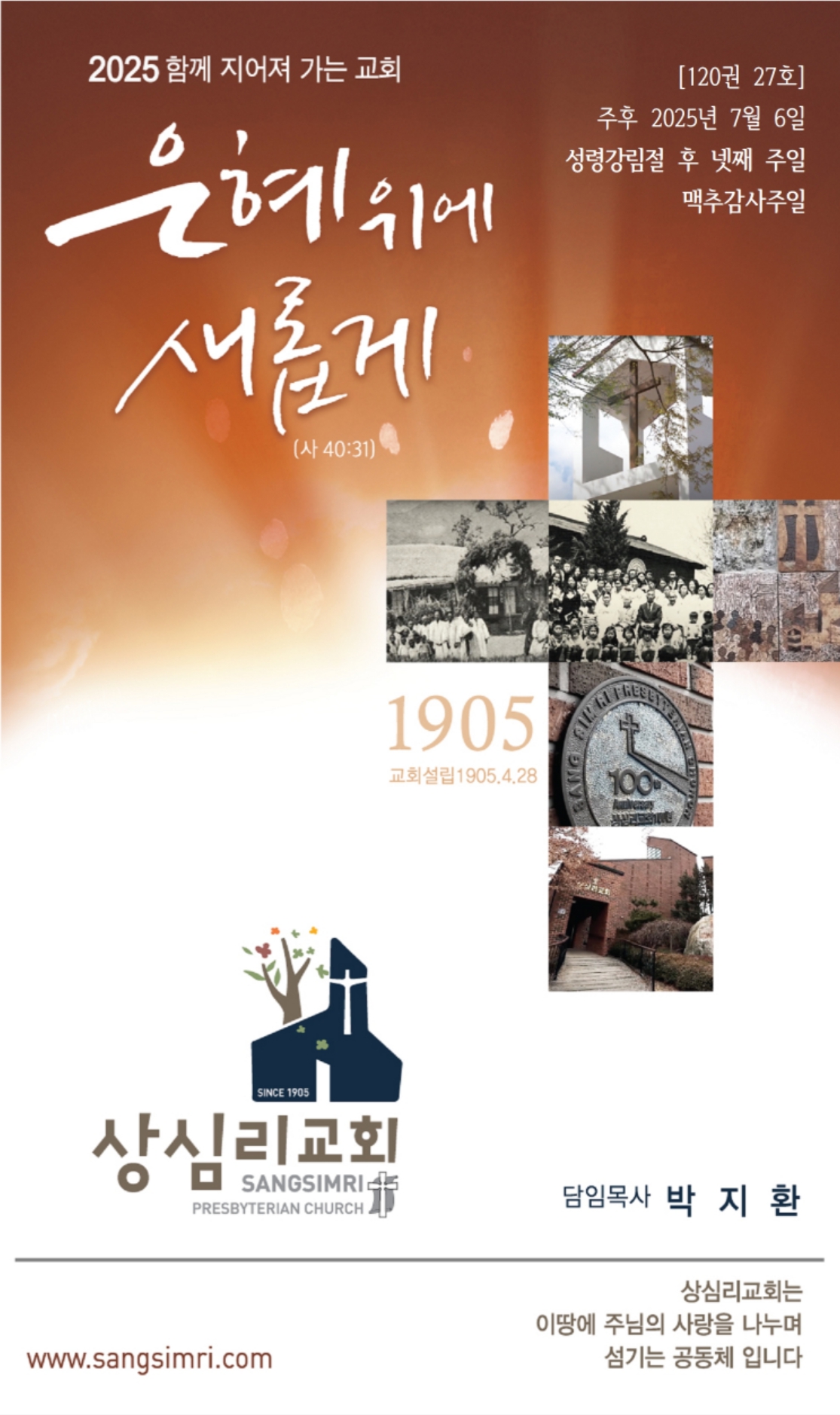 상심리교회 2025년 7월 13일 주보 (0) | 2025.07.12 |