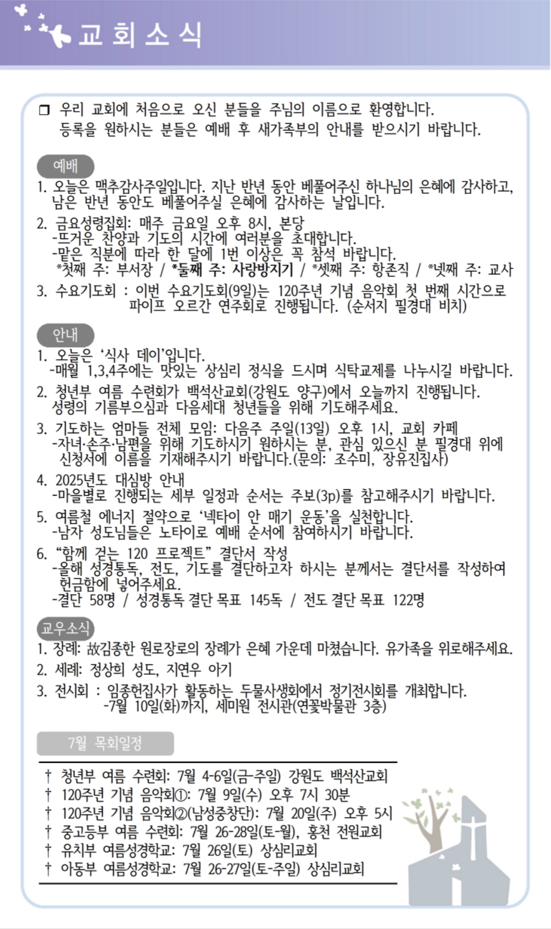 | 상심리교회 2025년 7월 13일 주보 (0) | 2025.07.12 |