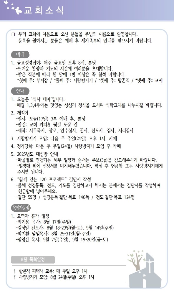 | 상심리교회 2025년 8월 10일 주보 (0) | 2025.08.09 |