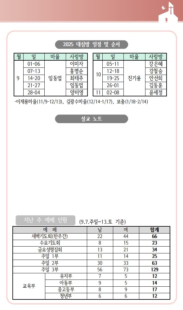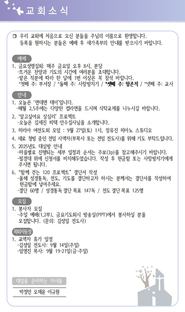 | 상심리교회 2025년 9월 7일 주보 (0) | 2025.09.06 |
