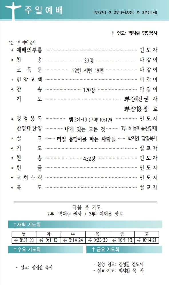 상심리교회 2025년 9월 21일 주보