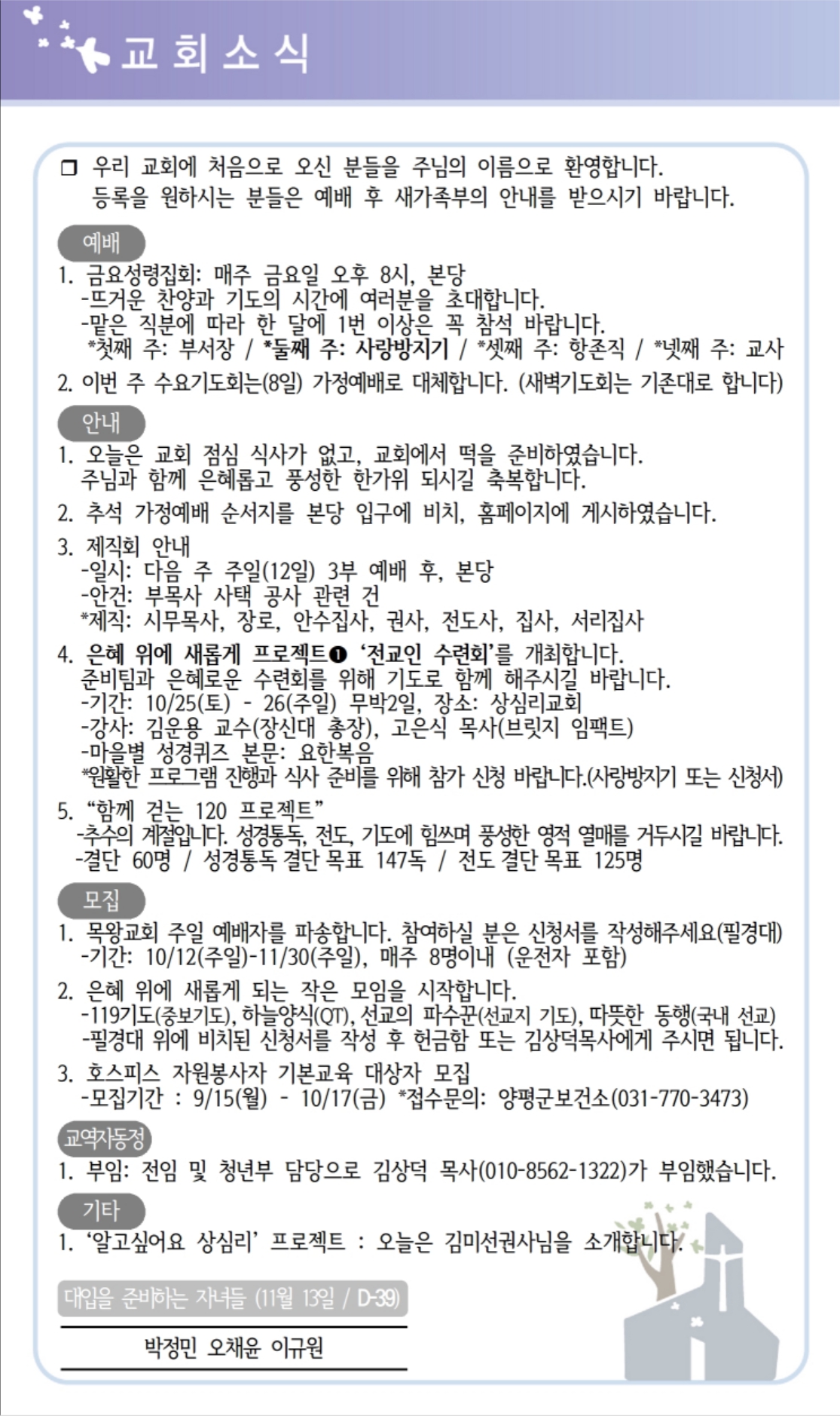 상심리교회 2025년 10월 5일 주보