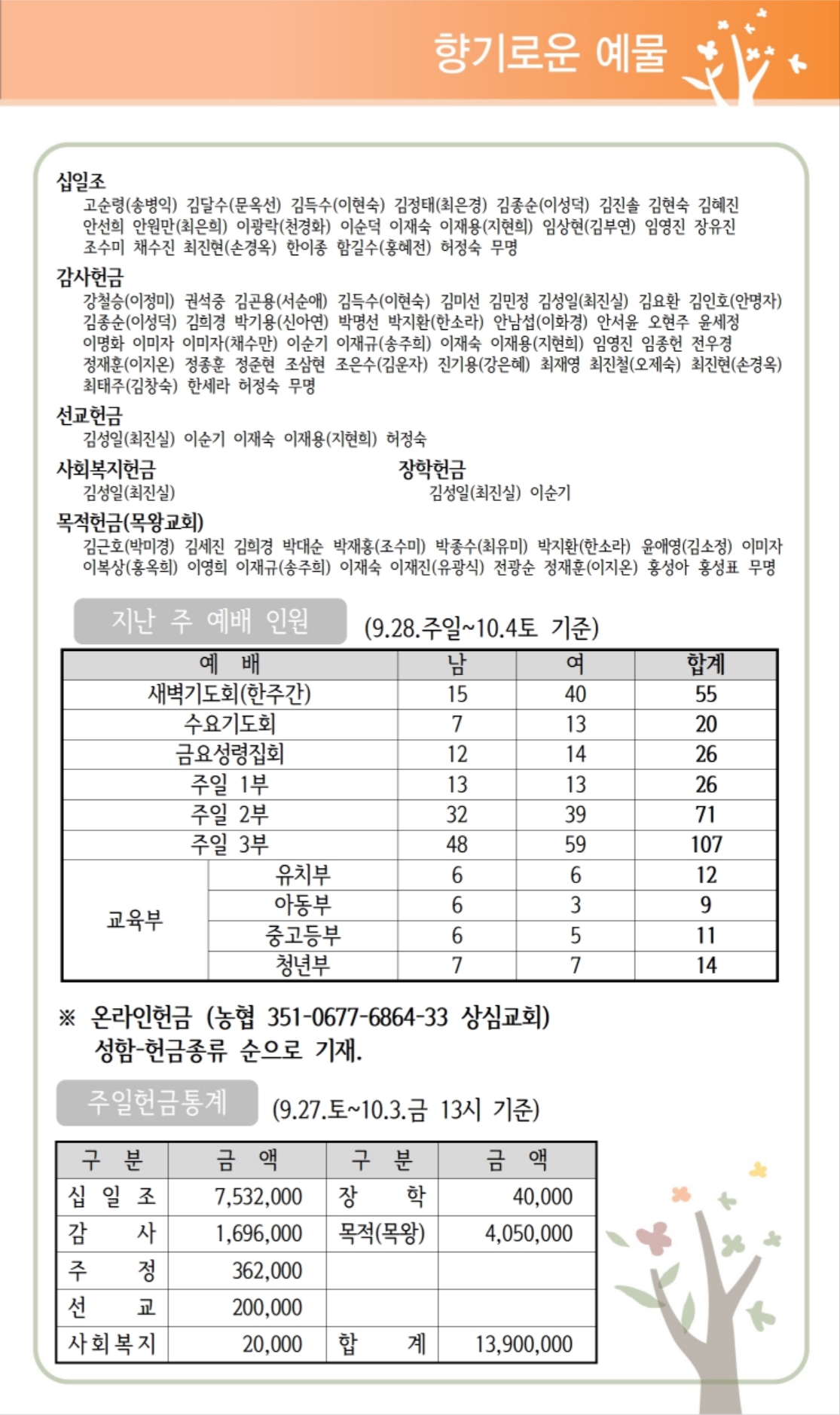 상심리교회 2025년 10월 5일 주보