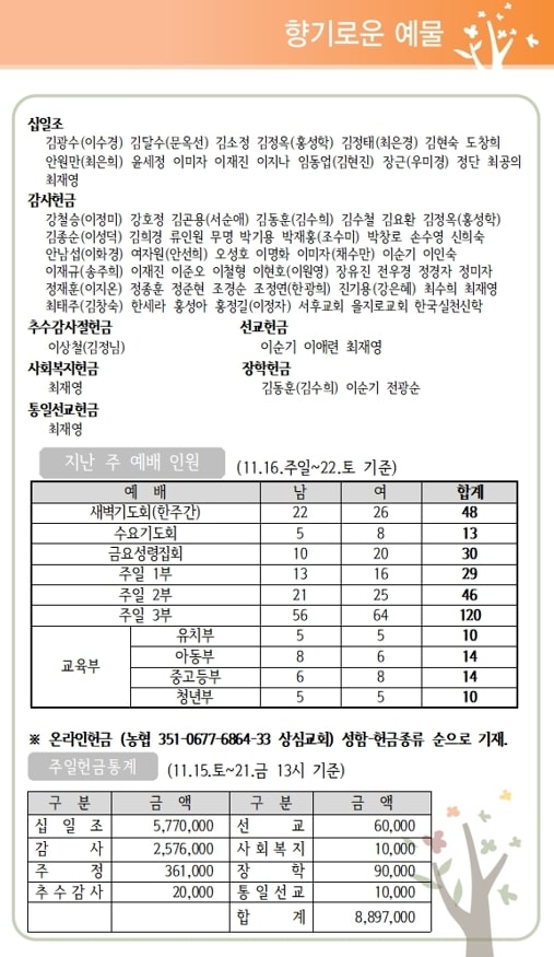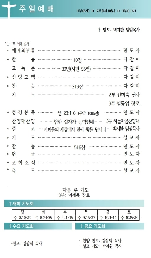 상심리교회 2025년 11월 23일 주보