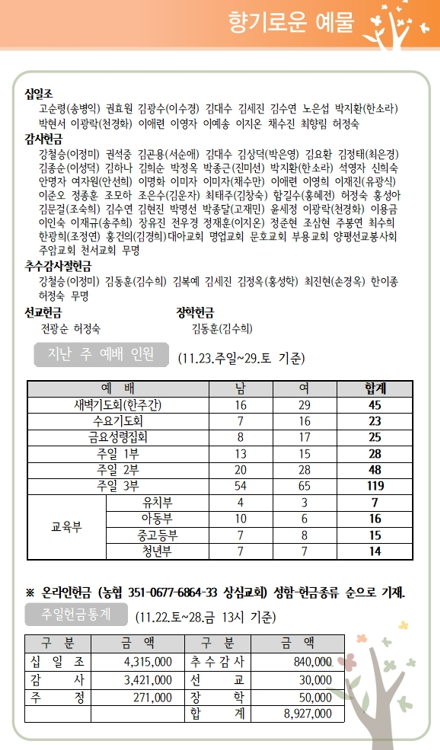 상심리교회 2025년 11월 30일 주보