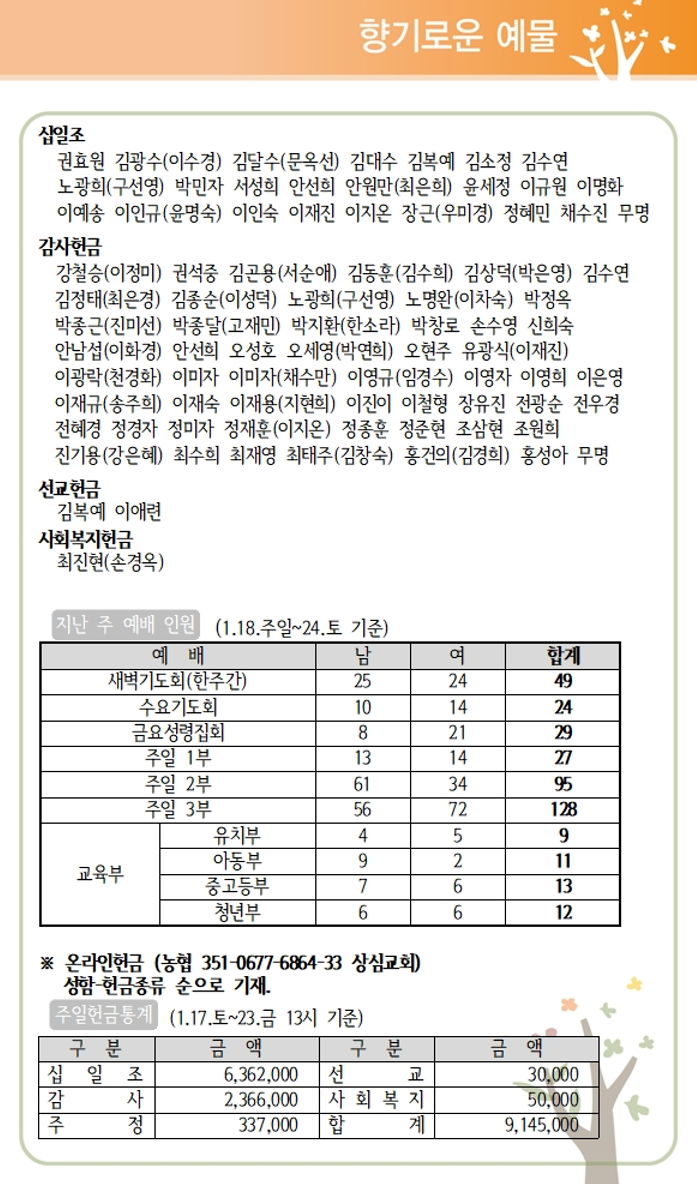 상심리교회 2026년 1월25일 주보