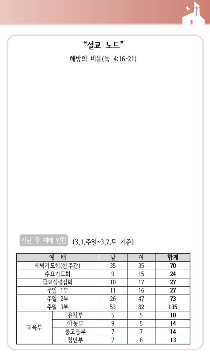상심리교회 2026년 3월8일 주보