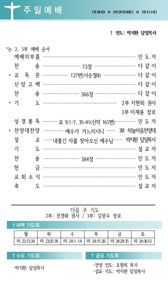 상심리교회 2026년 3월15일 주보