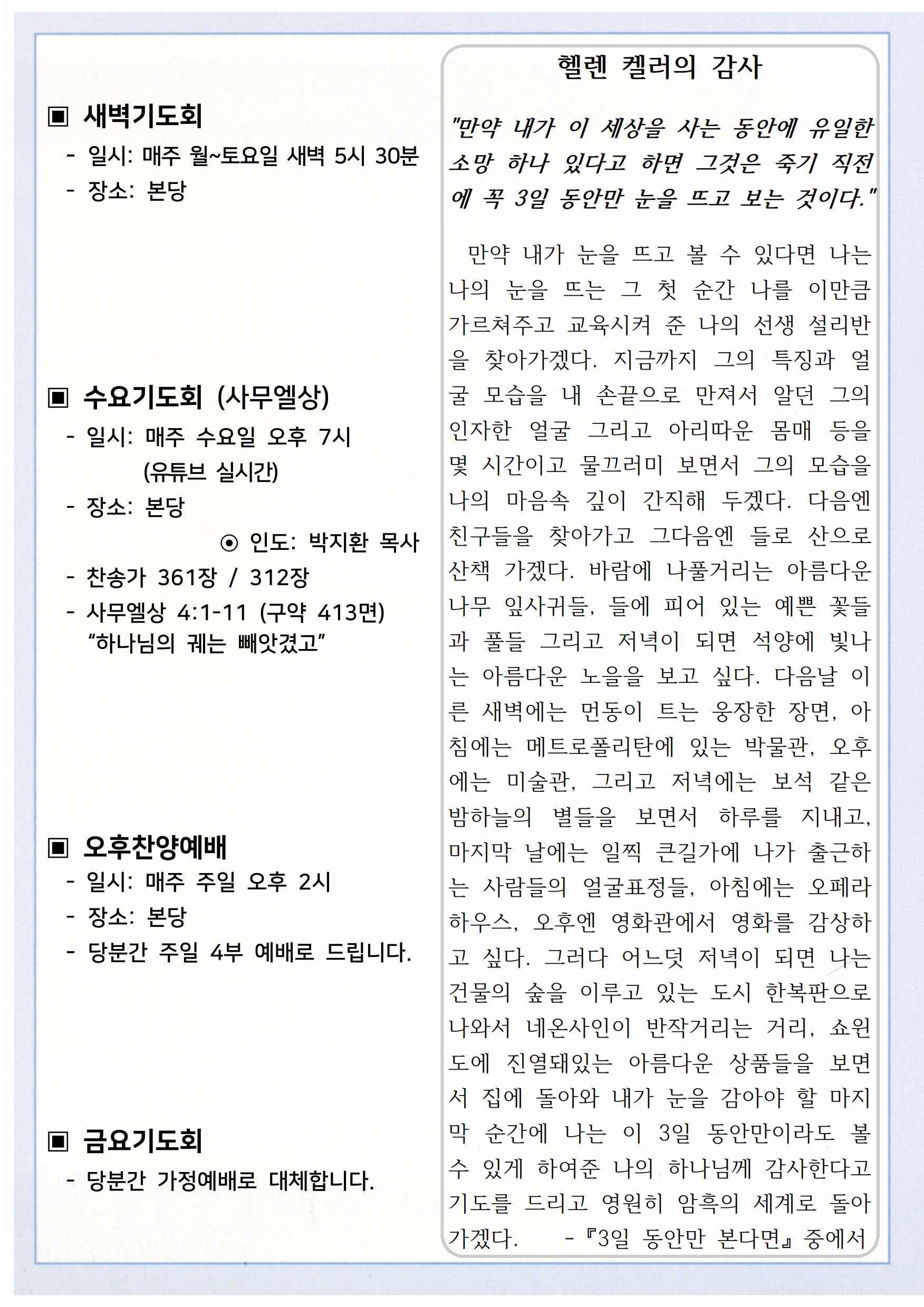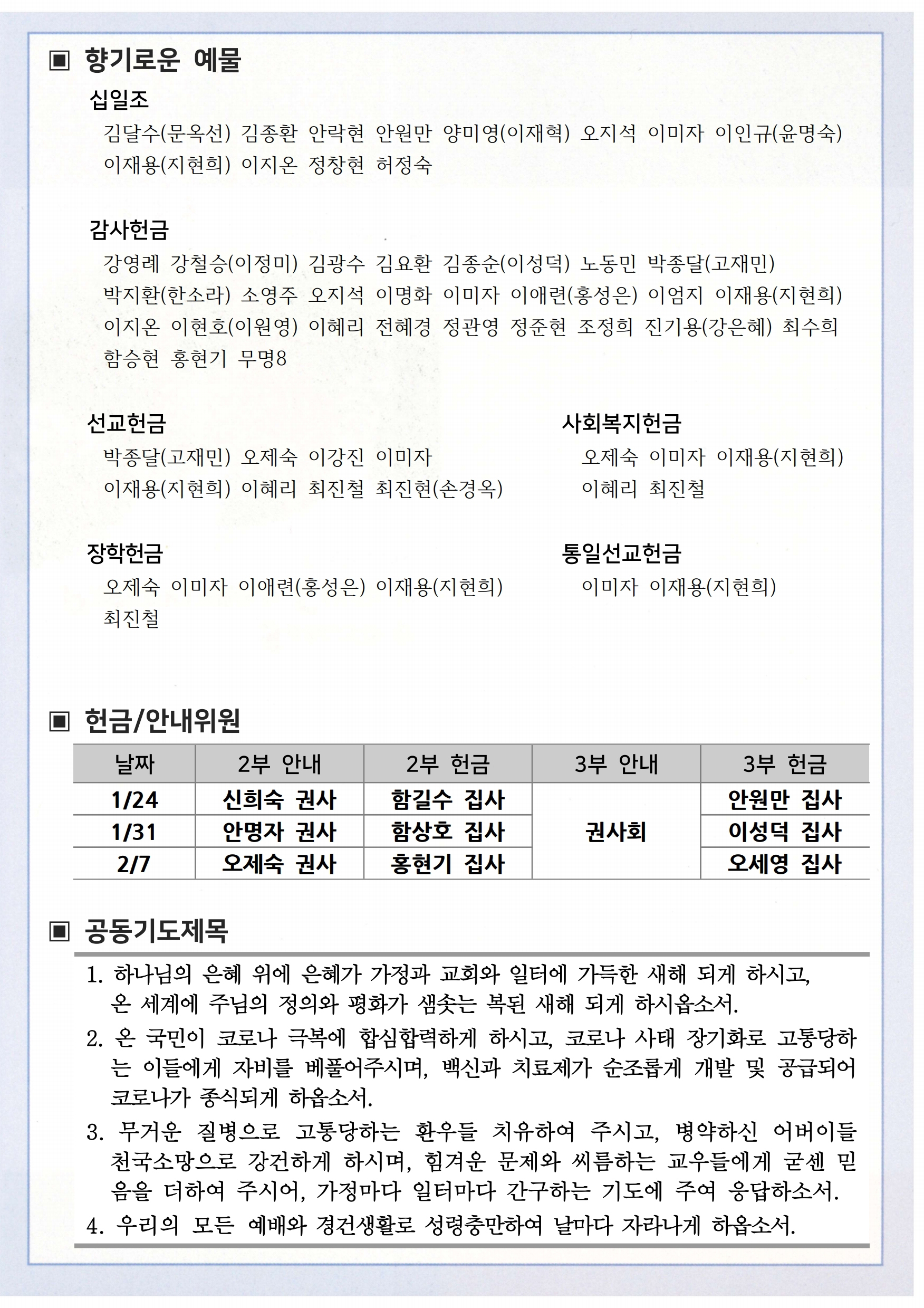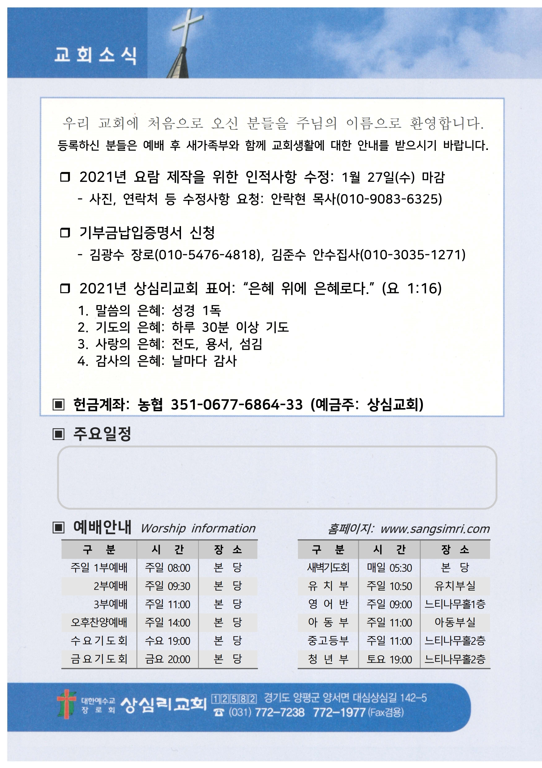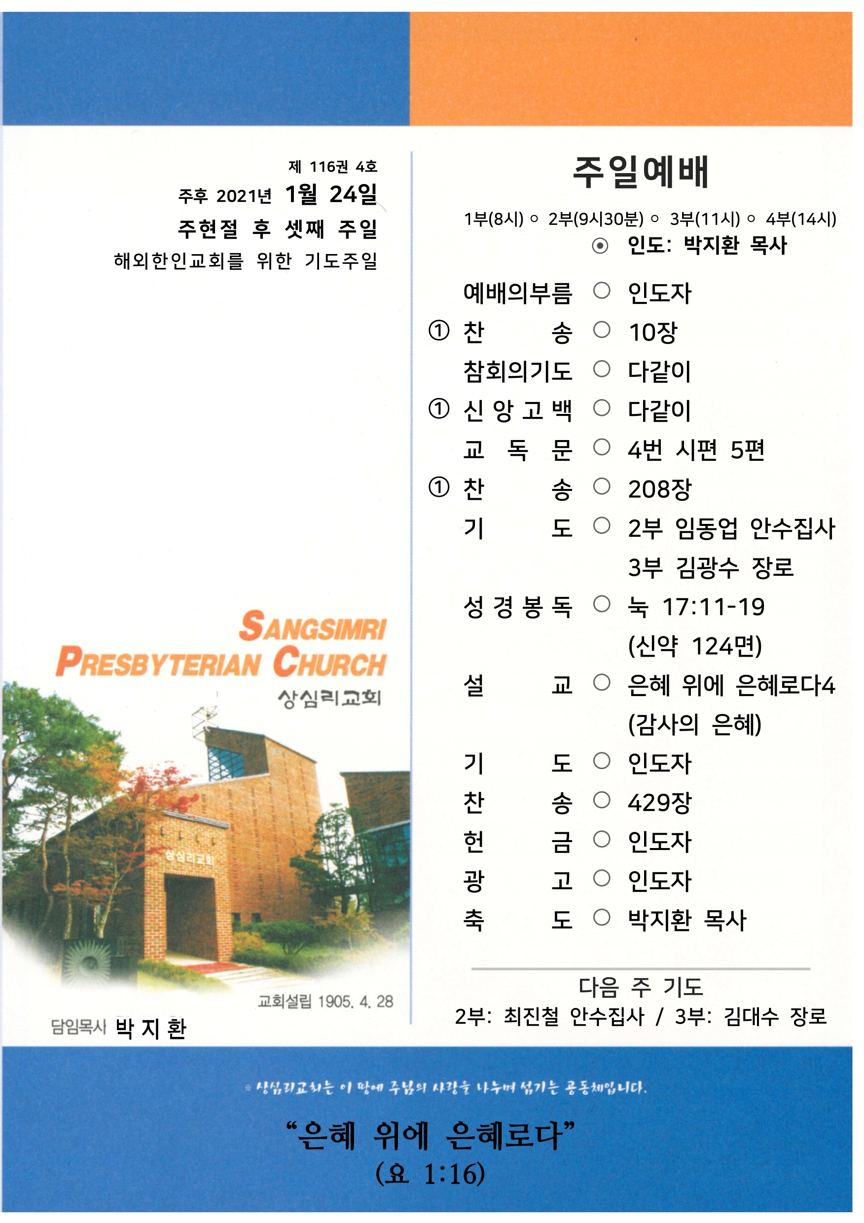 상심리교회 2021년 1월 24일 주보