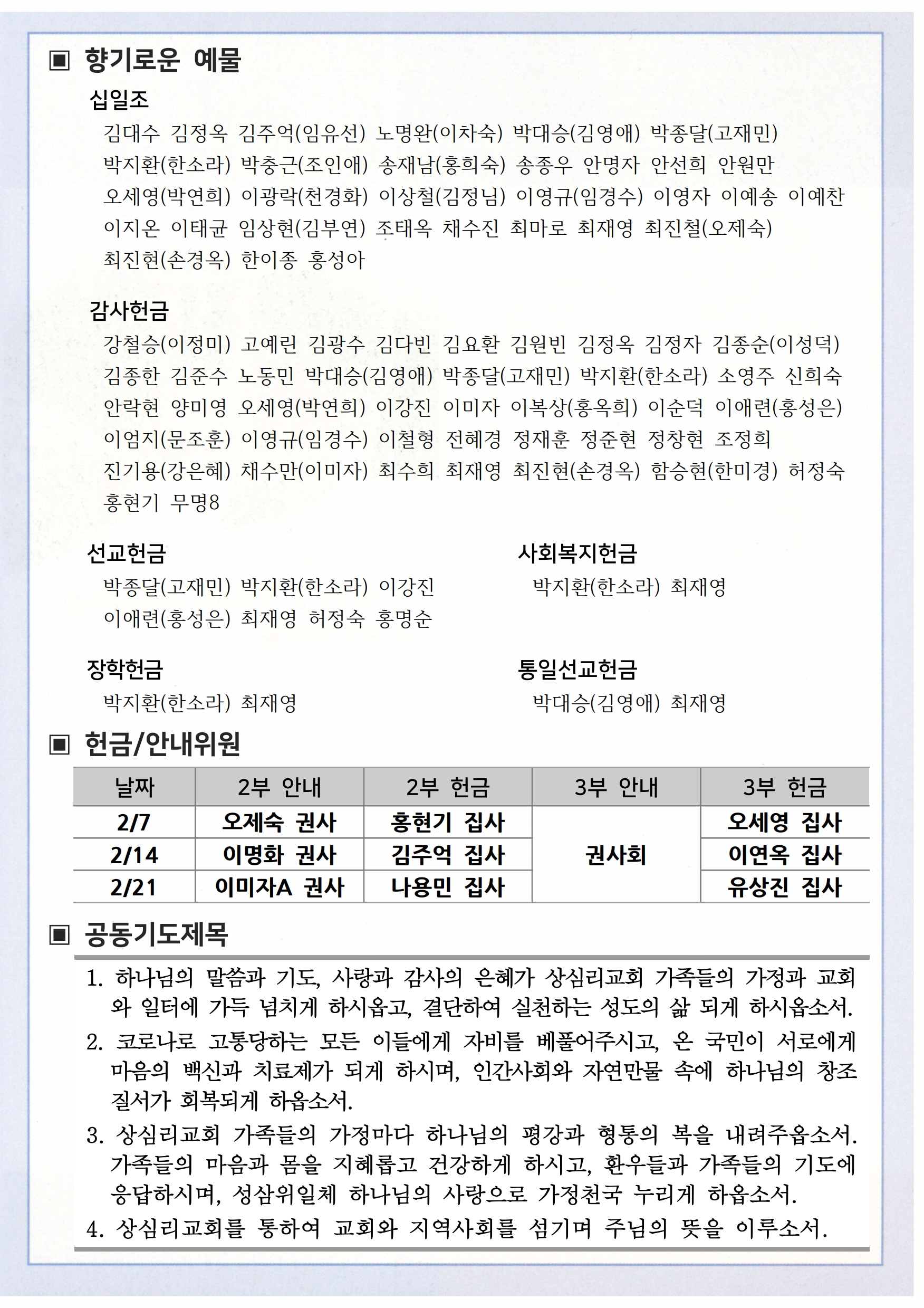 상심리교회 2021년 2월 7일 주보