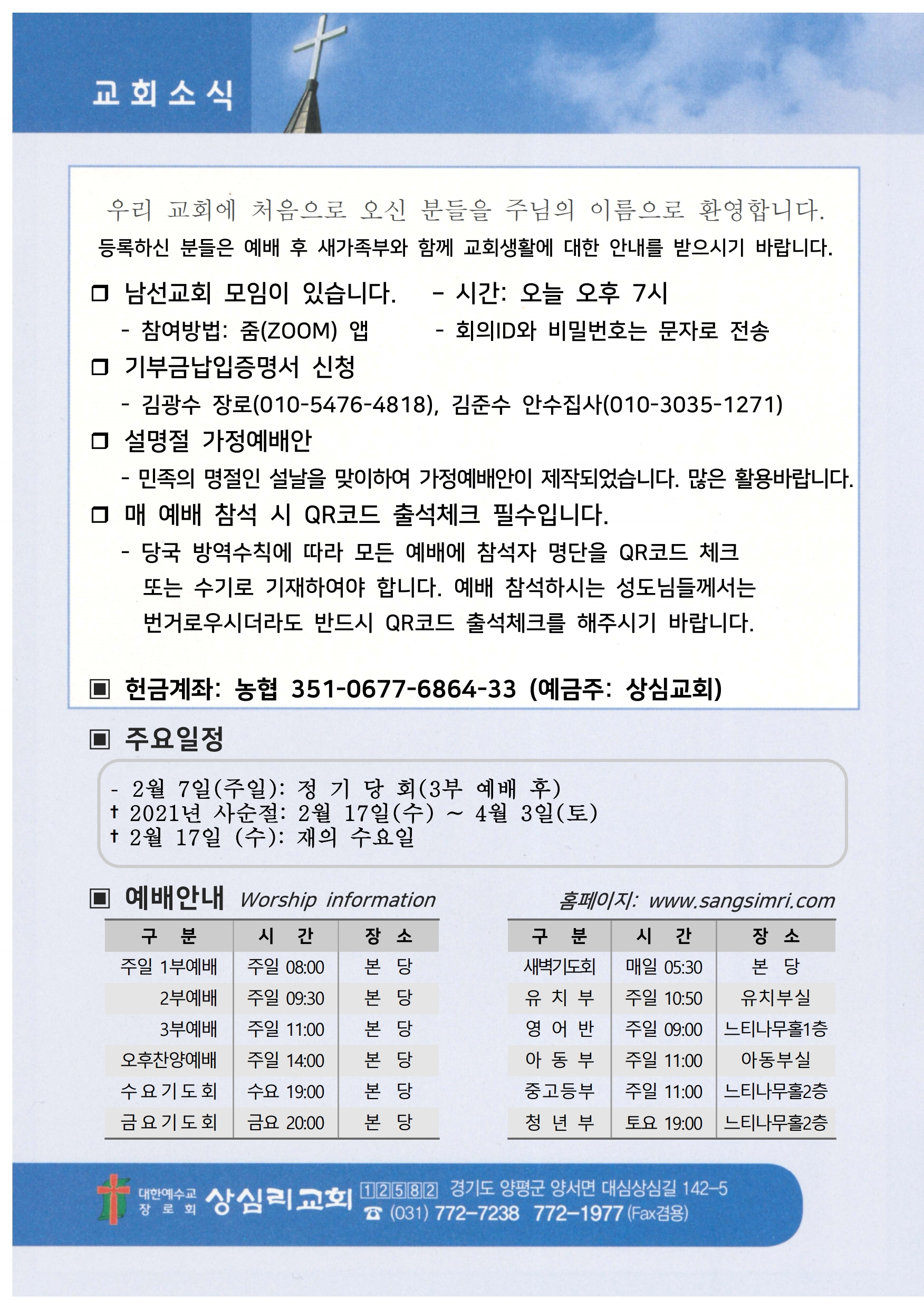 상심리교회 2021년 2월 7일 주보