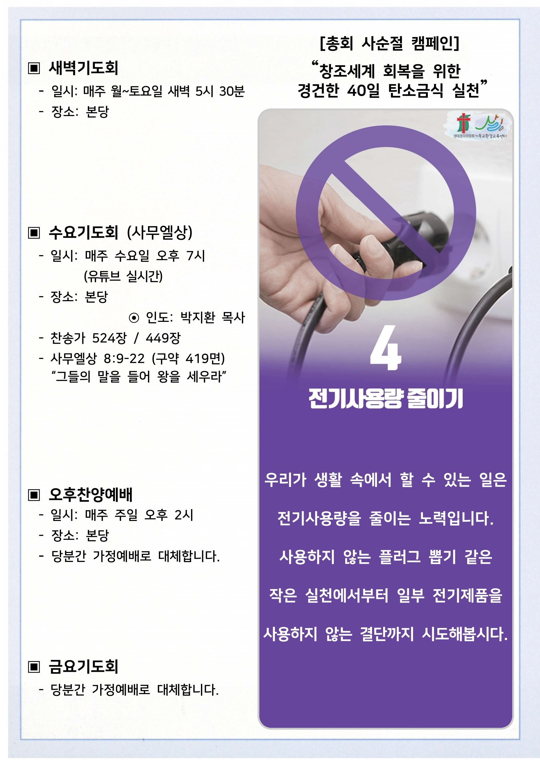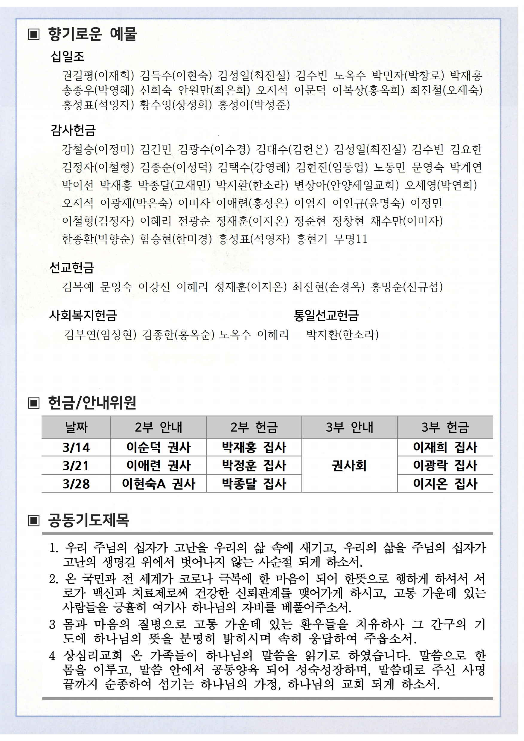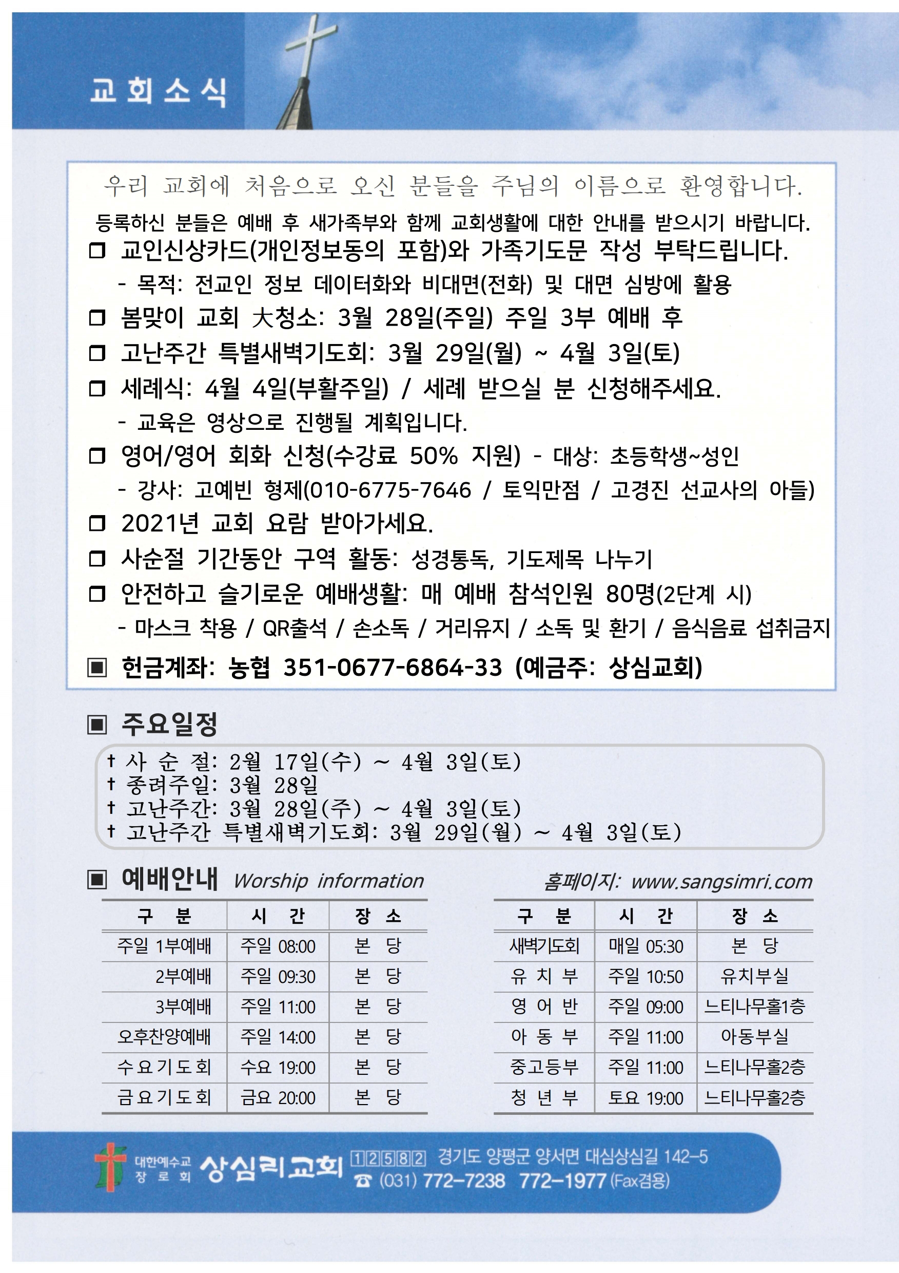 상심리교회 2021년 3월 14일 주보