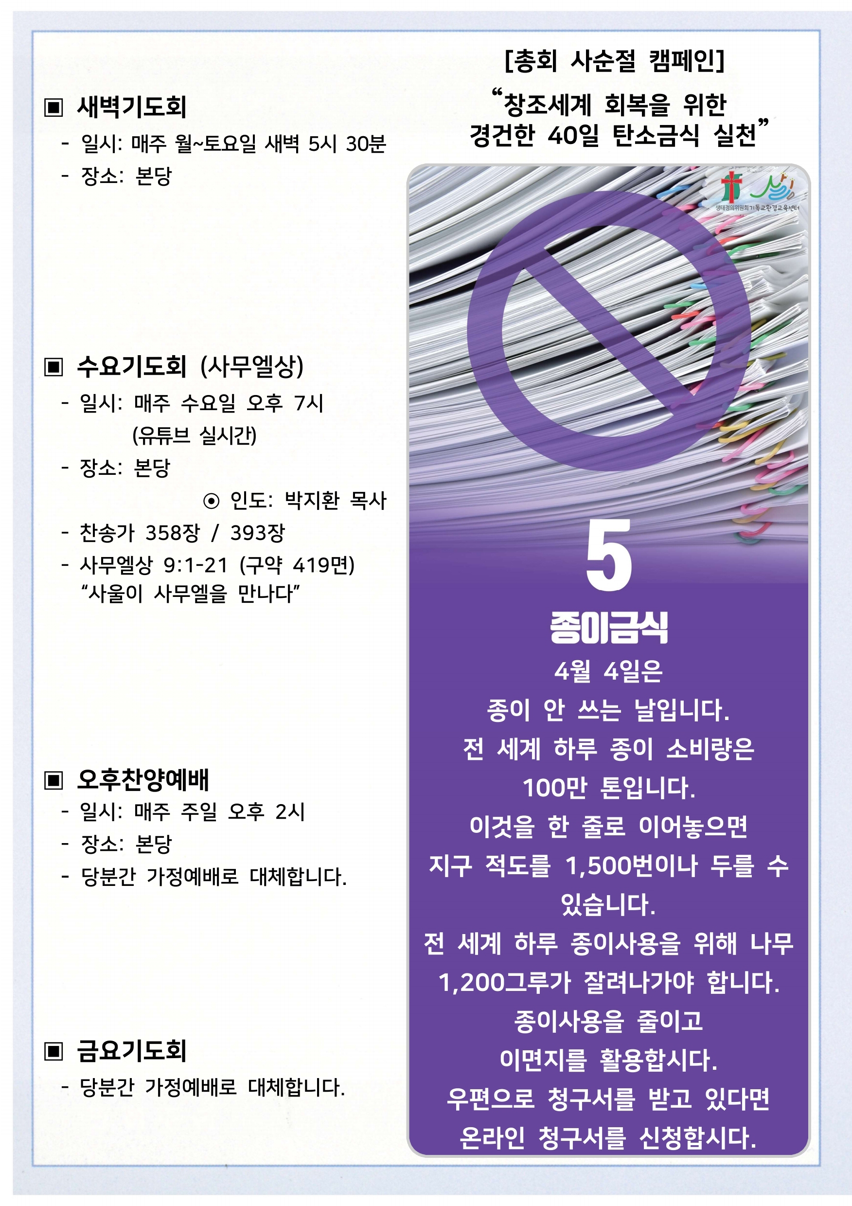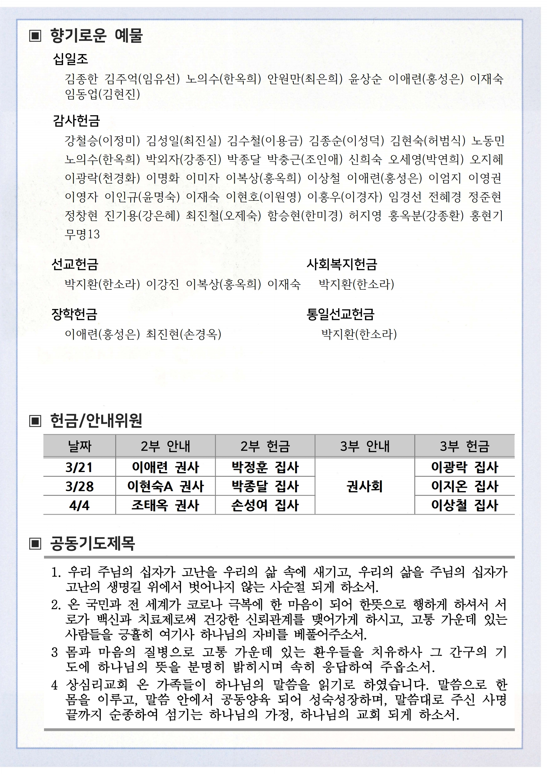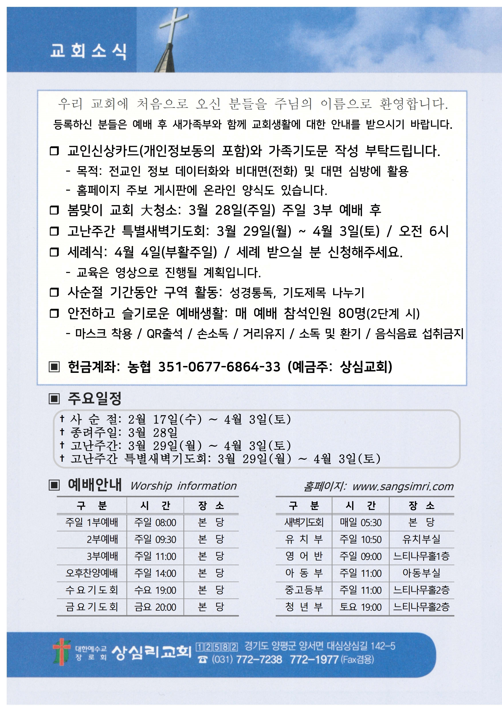 상심리교회 2021년 3월 21일 주보