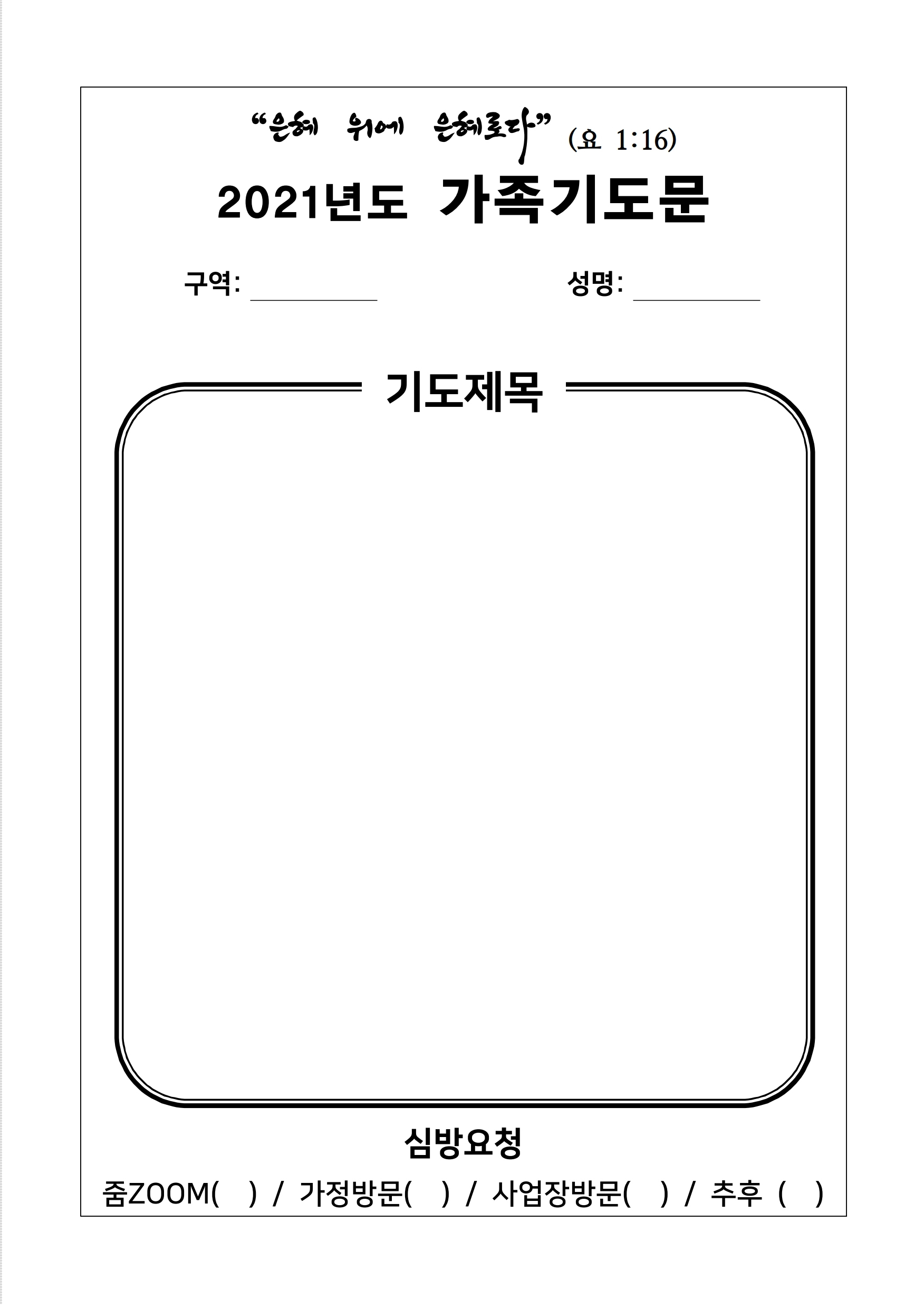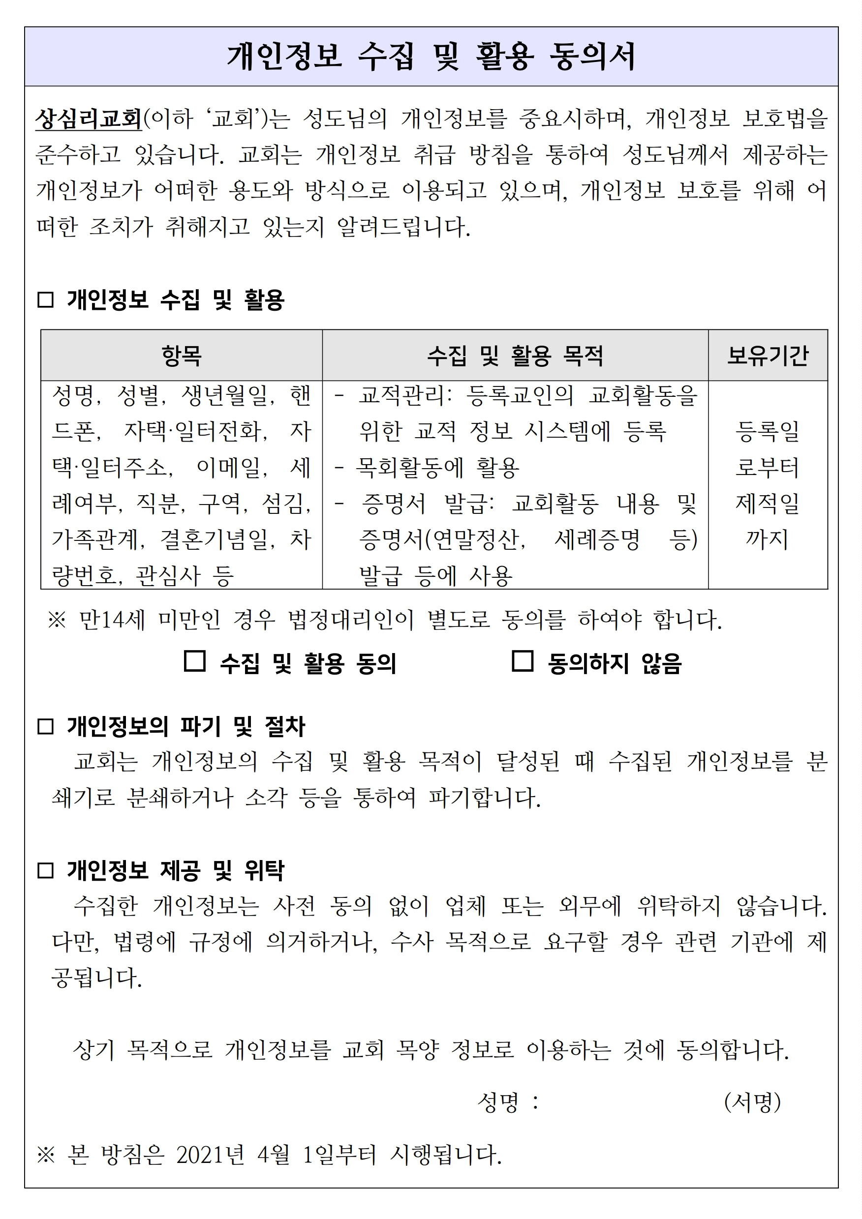 | 상심리교회 2021년 가족기도문과 교인신상카드(개인정보활용 동의 포함) (0) | 2021.03.14 |