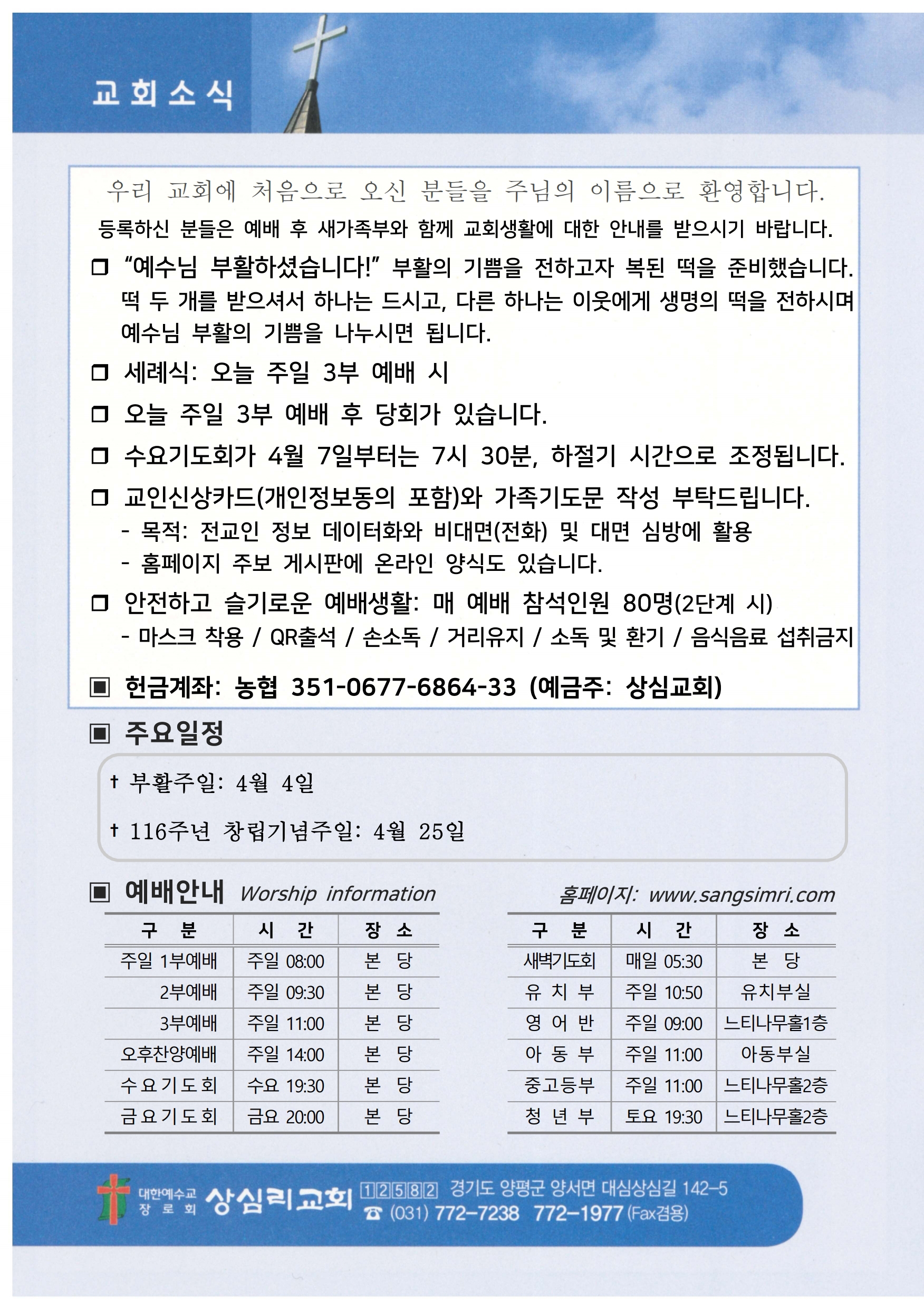상심리교회 2021년 4월 4일 주보