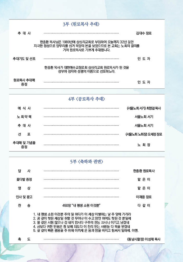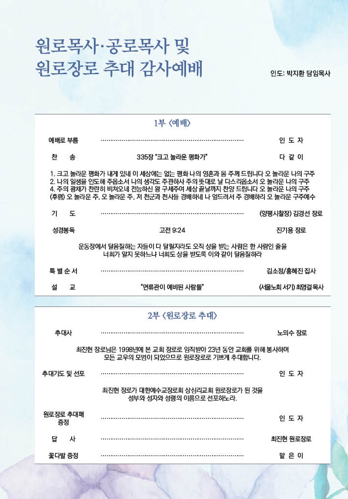 [원로목사.공로목사 및 원로장로 추대 감사예배] 순서지