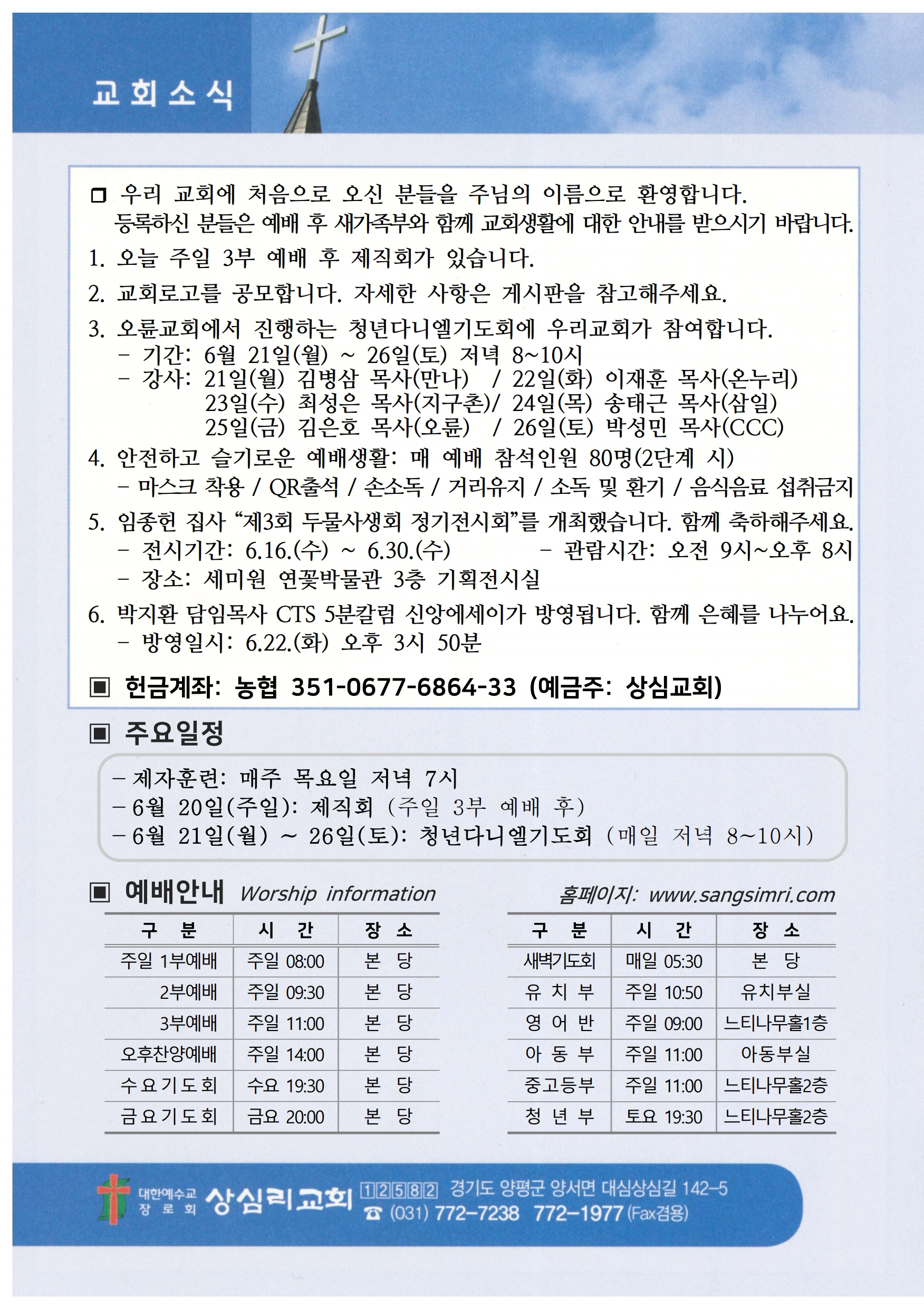 | 상심리교회 2021년 6월 6일 주보 (0) | 2021.06.05 |