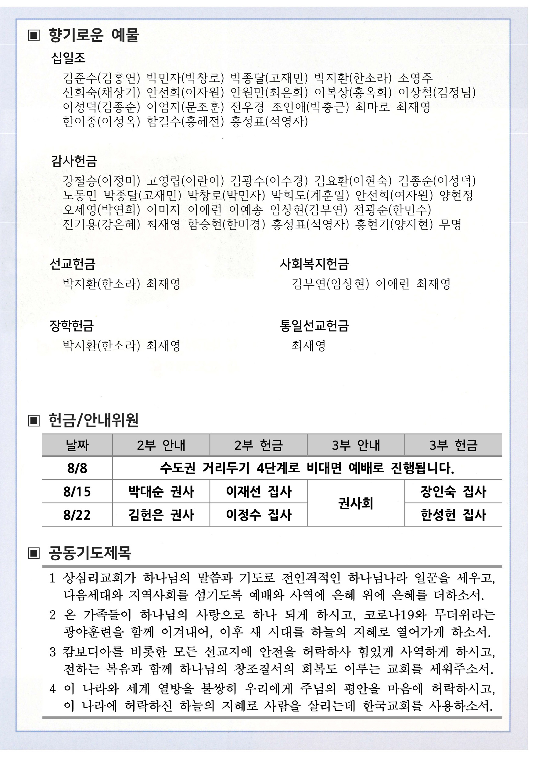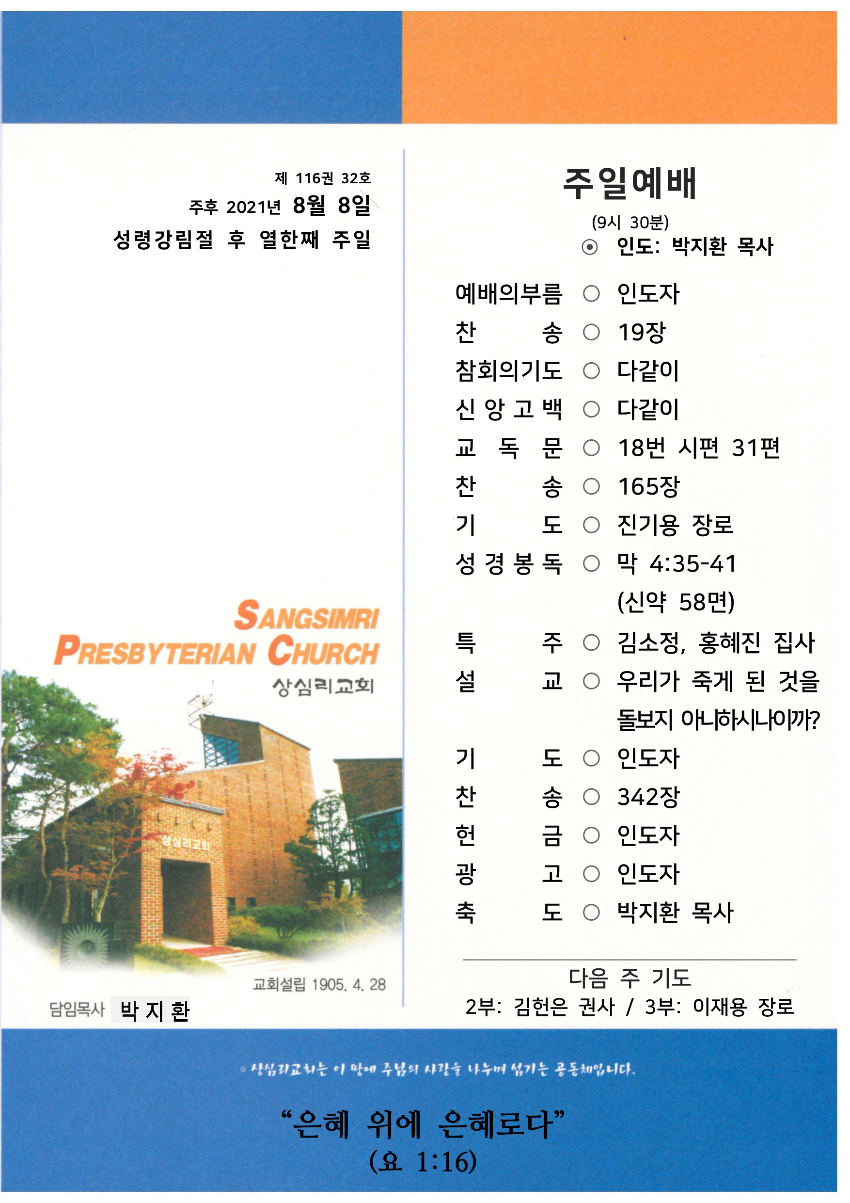 상심리교회 2021년 8월 8일 주보