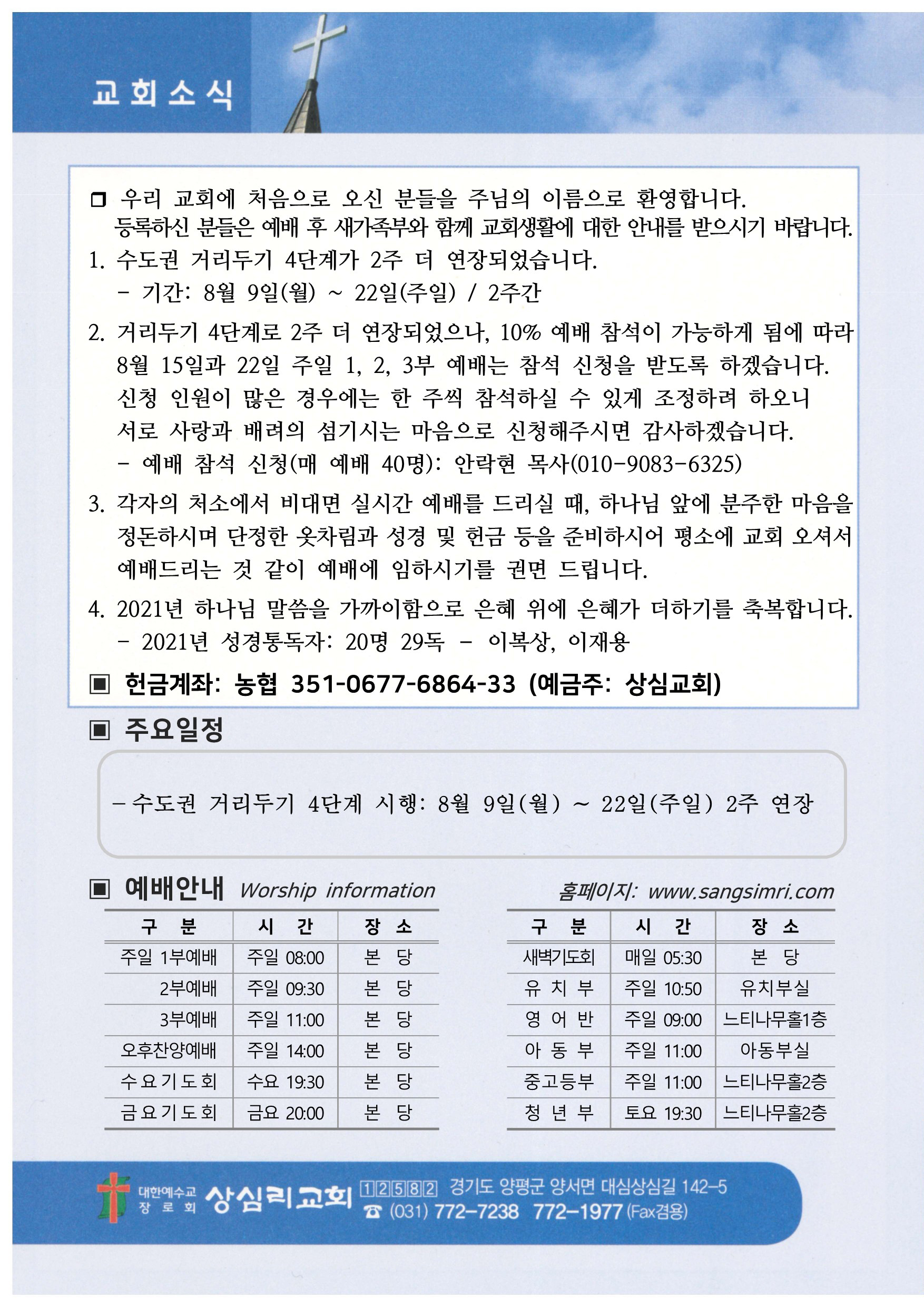 | 상심리교회 2021년 8월 22일 주보 (0) | 2021.08.21 |