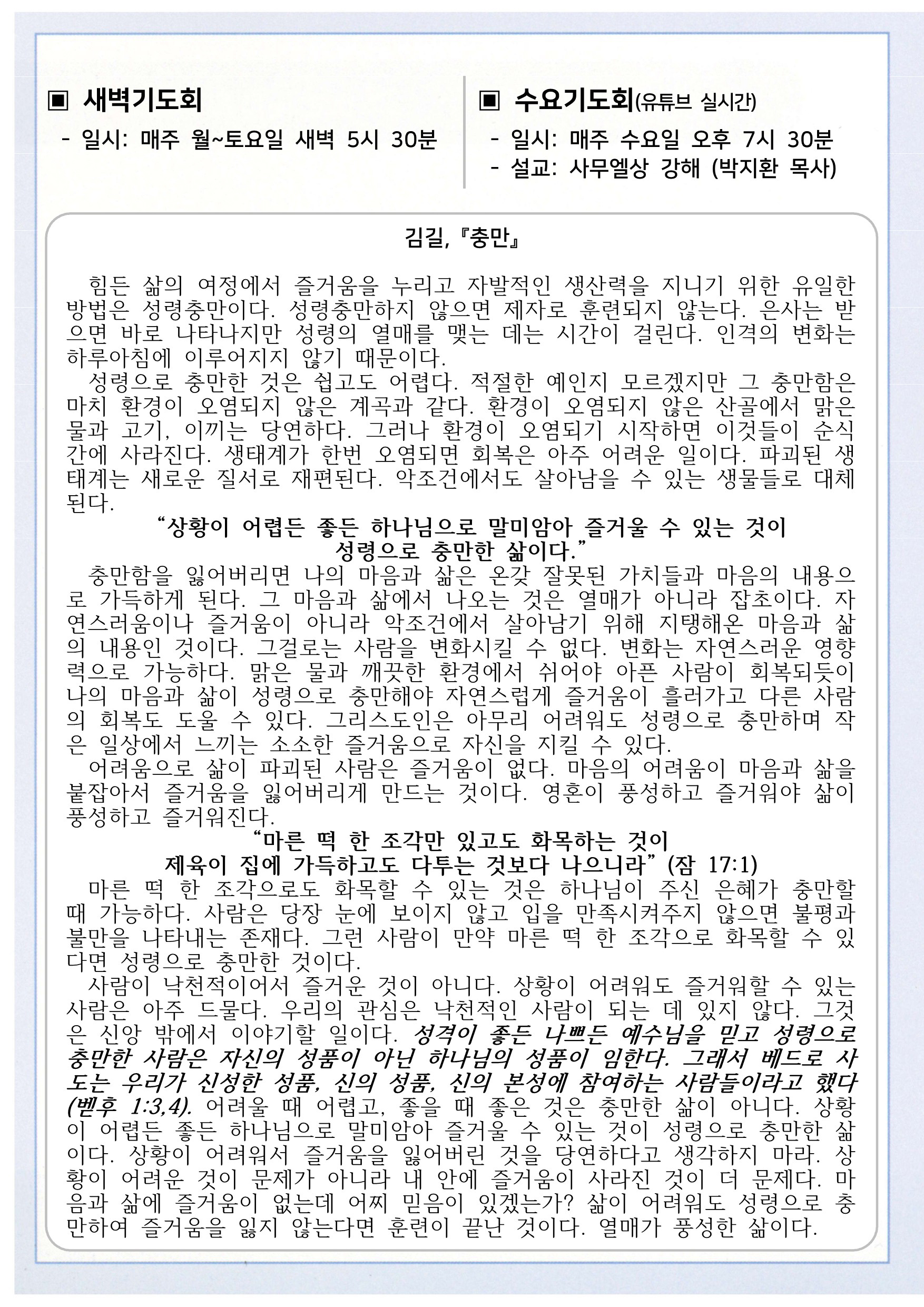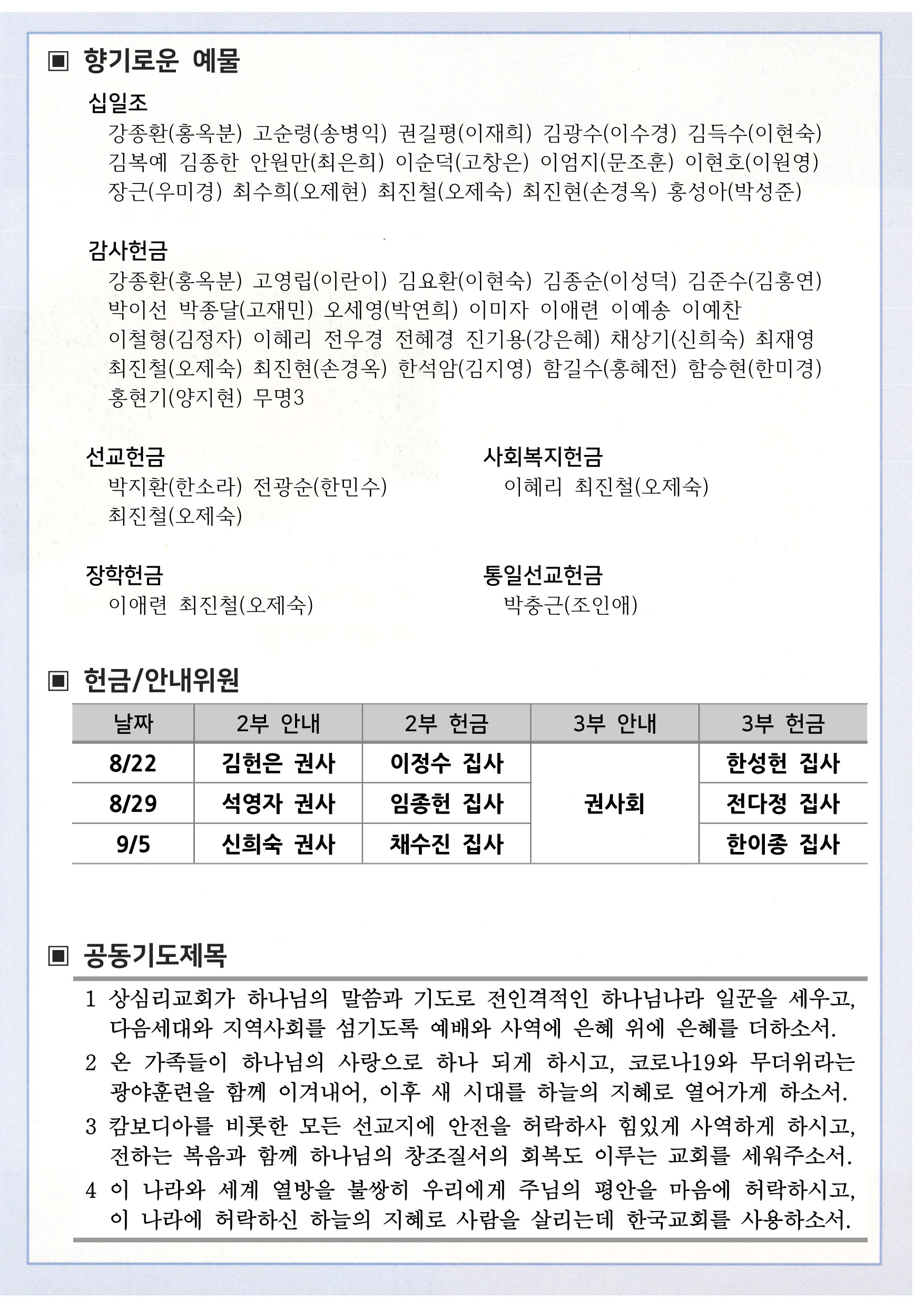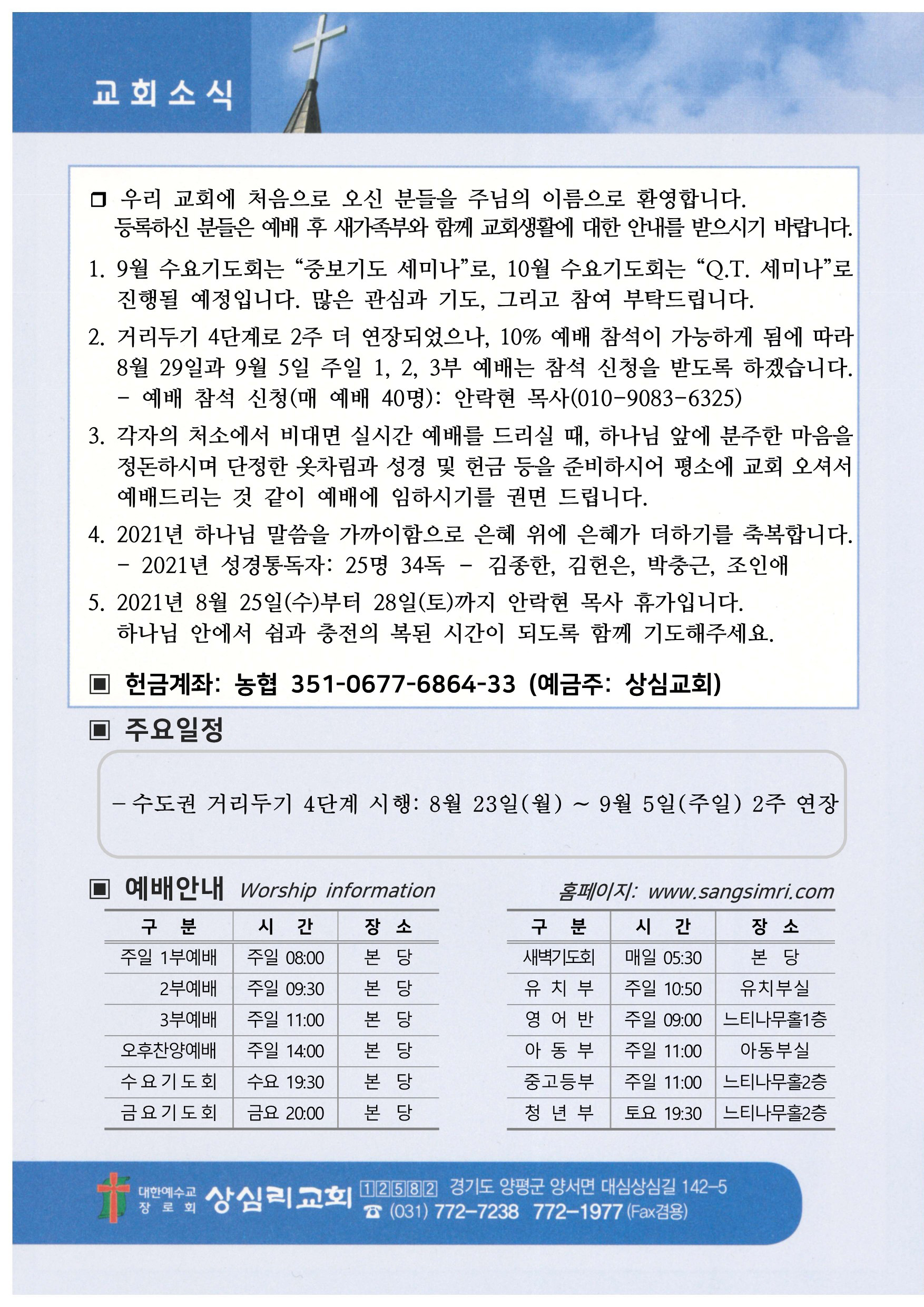 상심리교회 2021년 8월 22일 주보