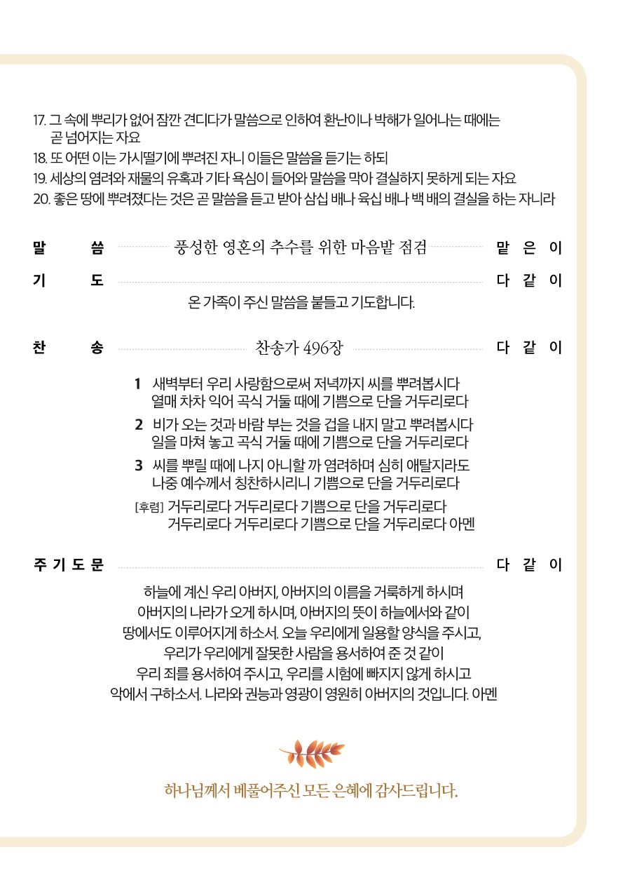 | 상심리교회 2021년 9월 26일 주보 (0) | 2021.09.25 |