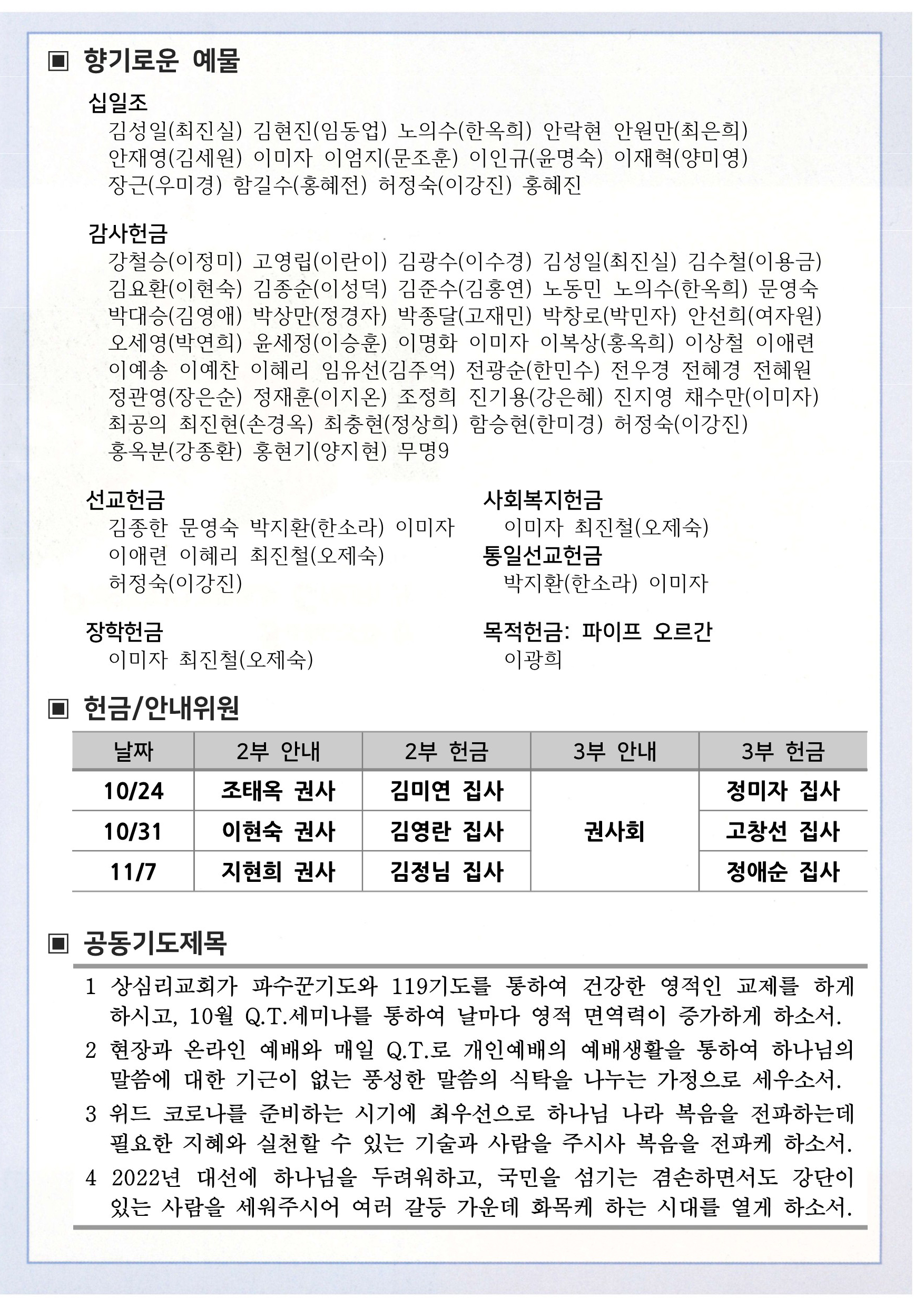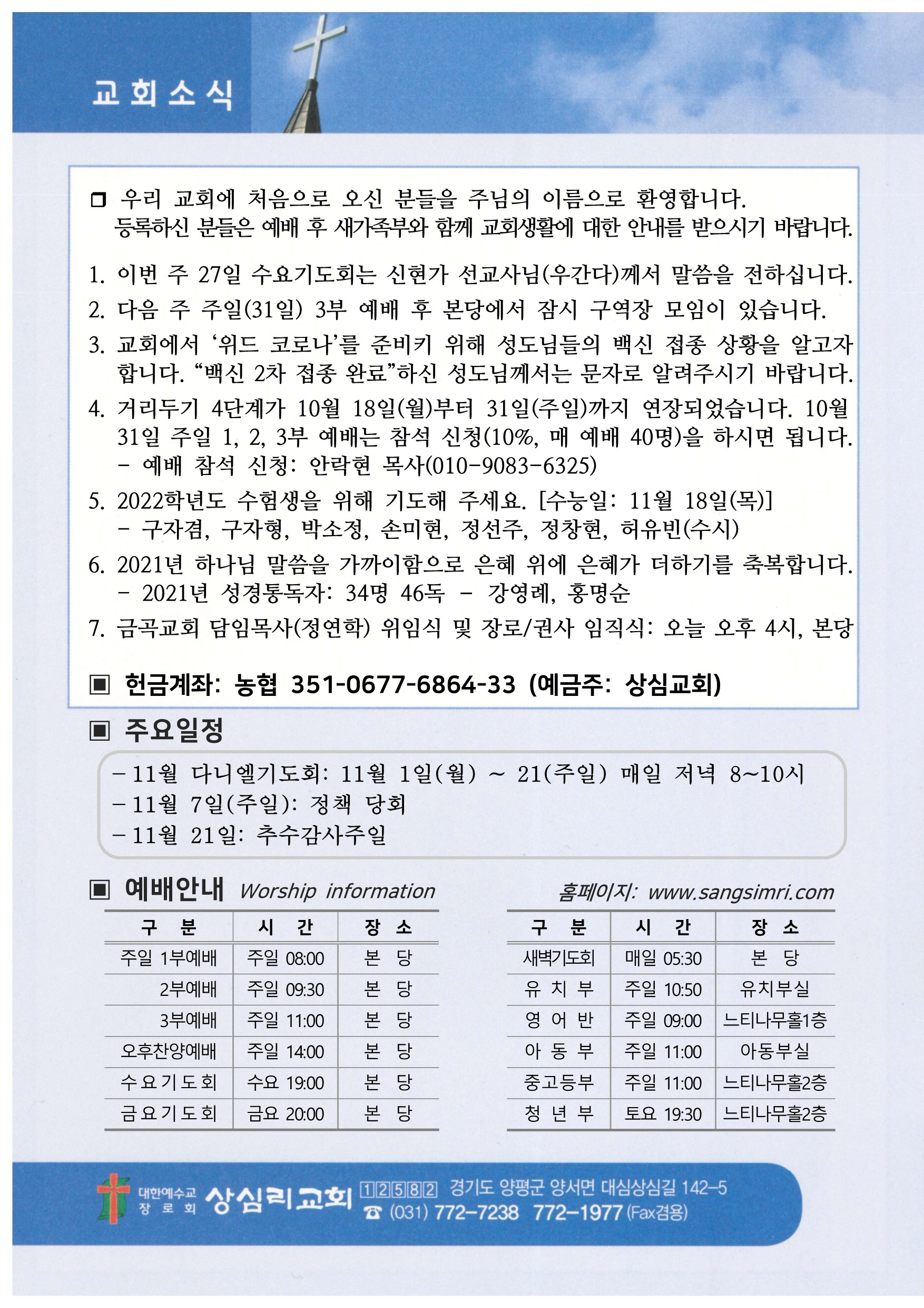 상심리교회 2021년 10월 24일 주보