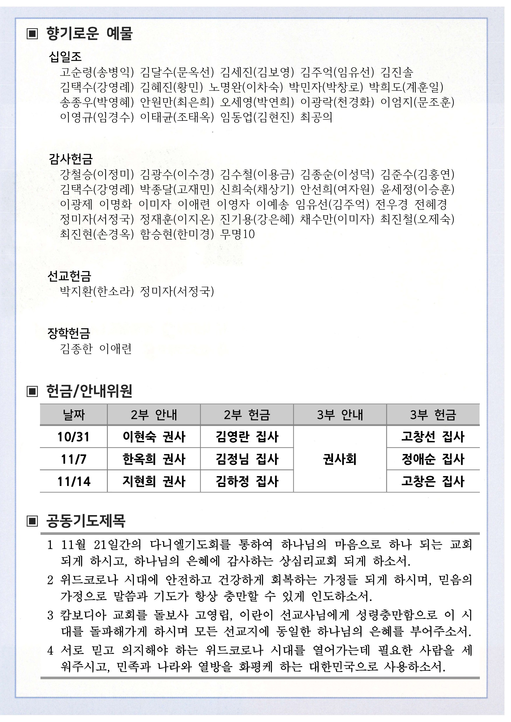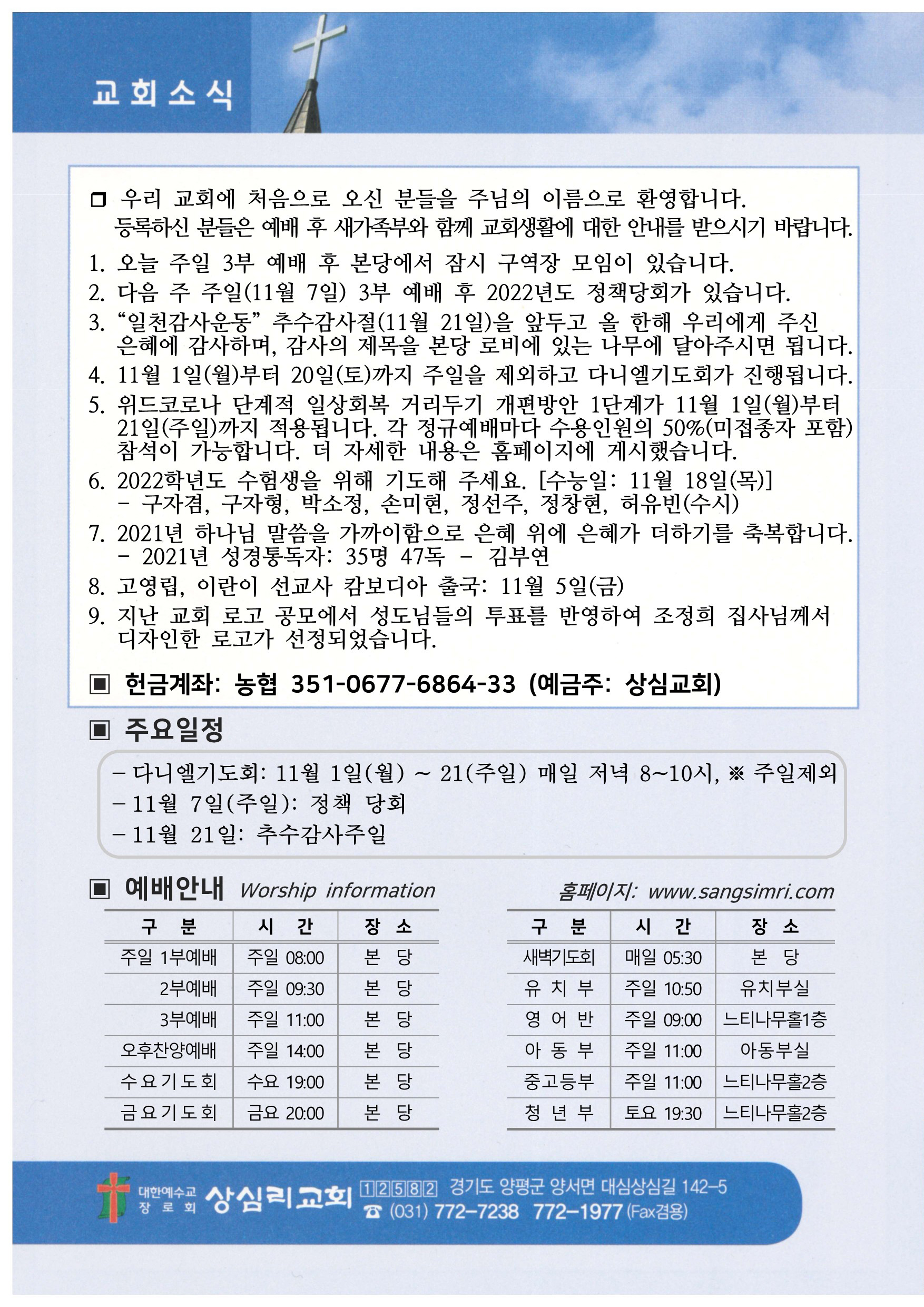 상심리교회 2021년 10월 31일 주보