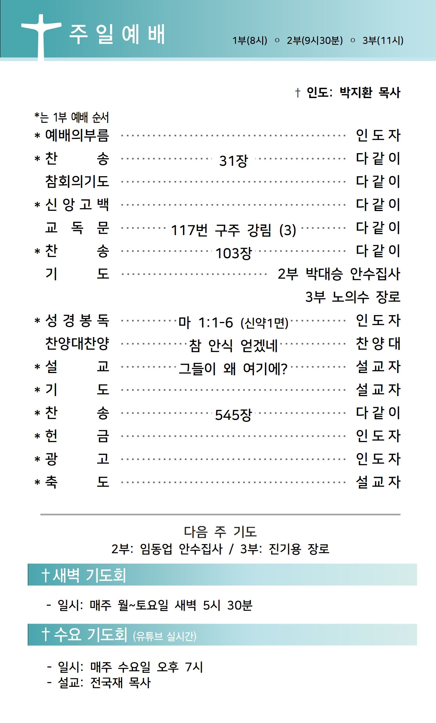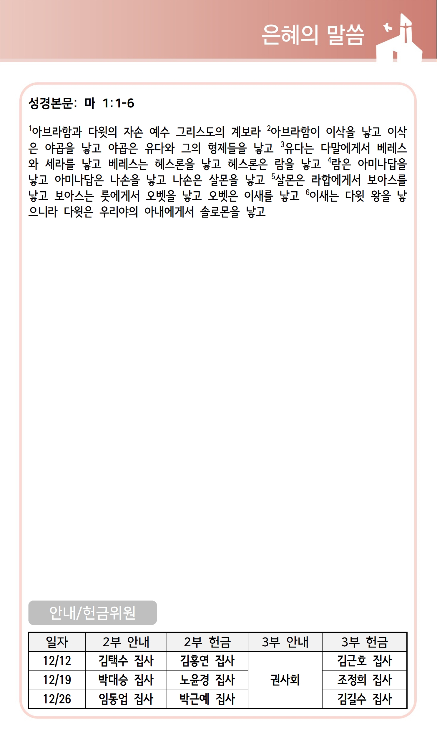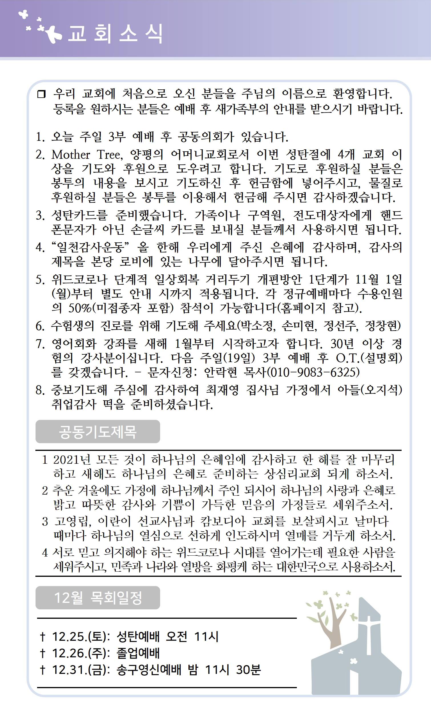 상심리교회 2021년 12월 12일 주보