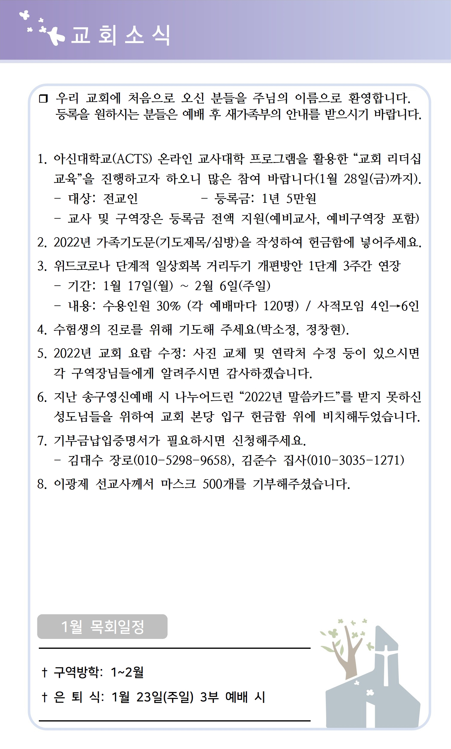 | 상심리교회 2022년 1월 23일 주보 (0) | 2022.01.22 |