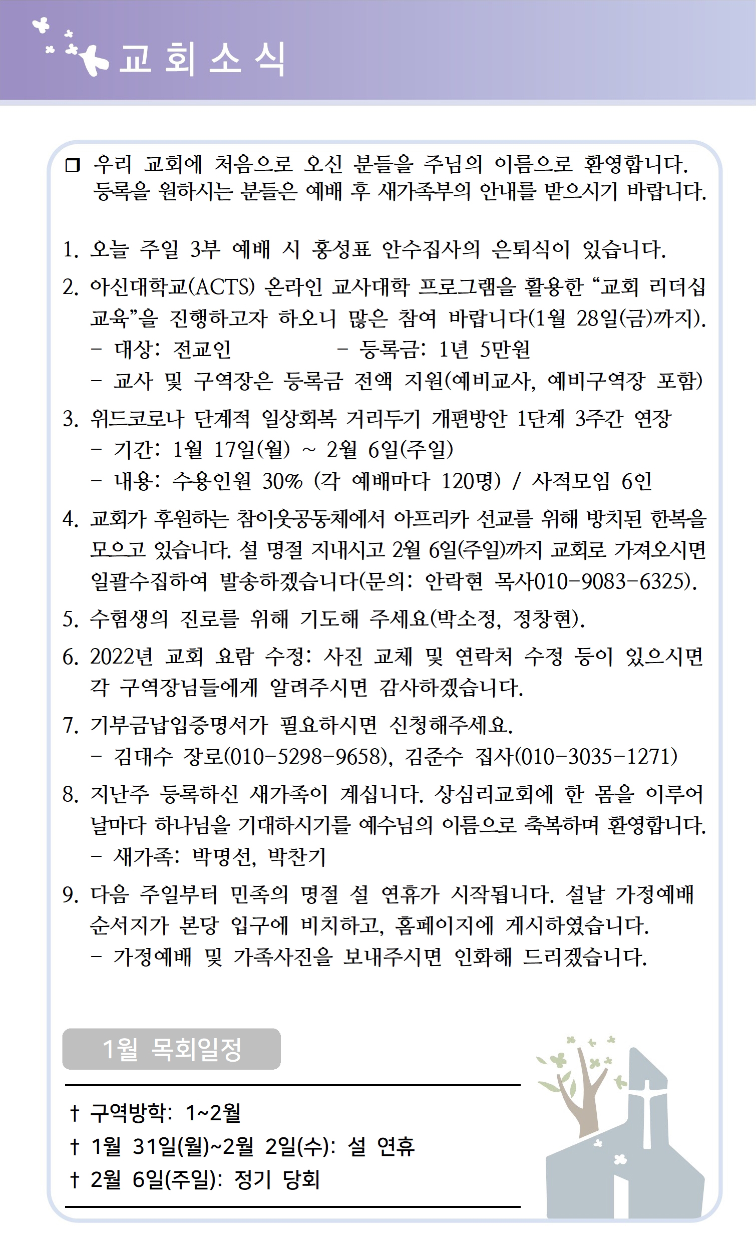 상심리교회 2022년 1월 23일 주보
