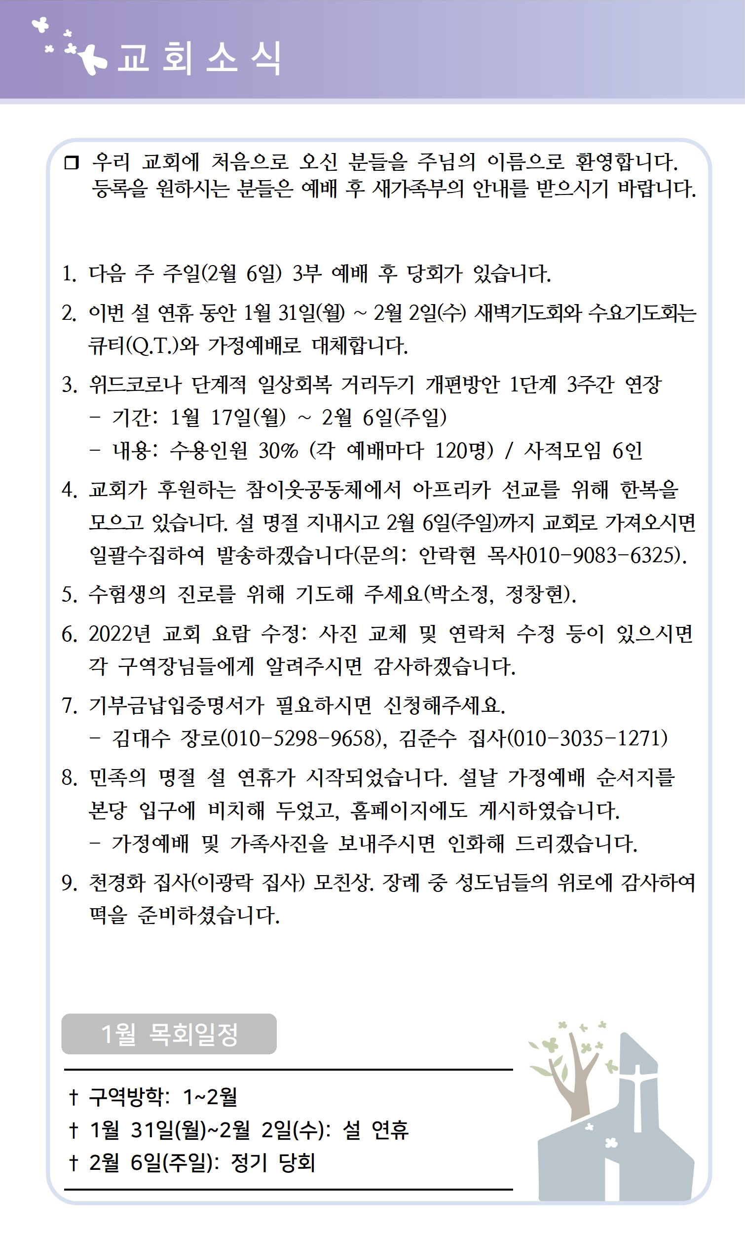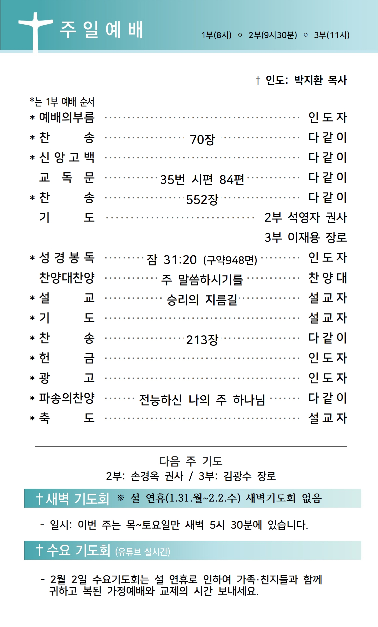 상심리교회 2022년 1월 30일 주보
