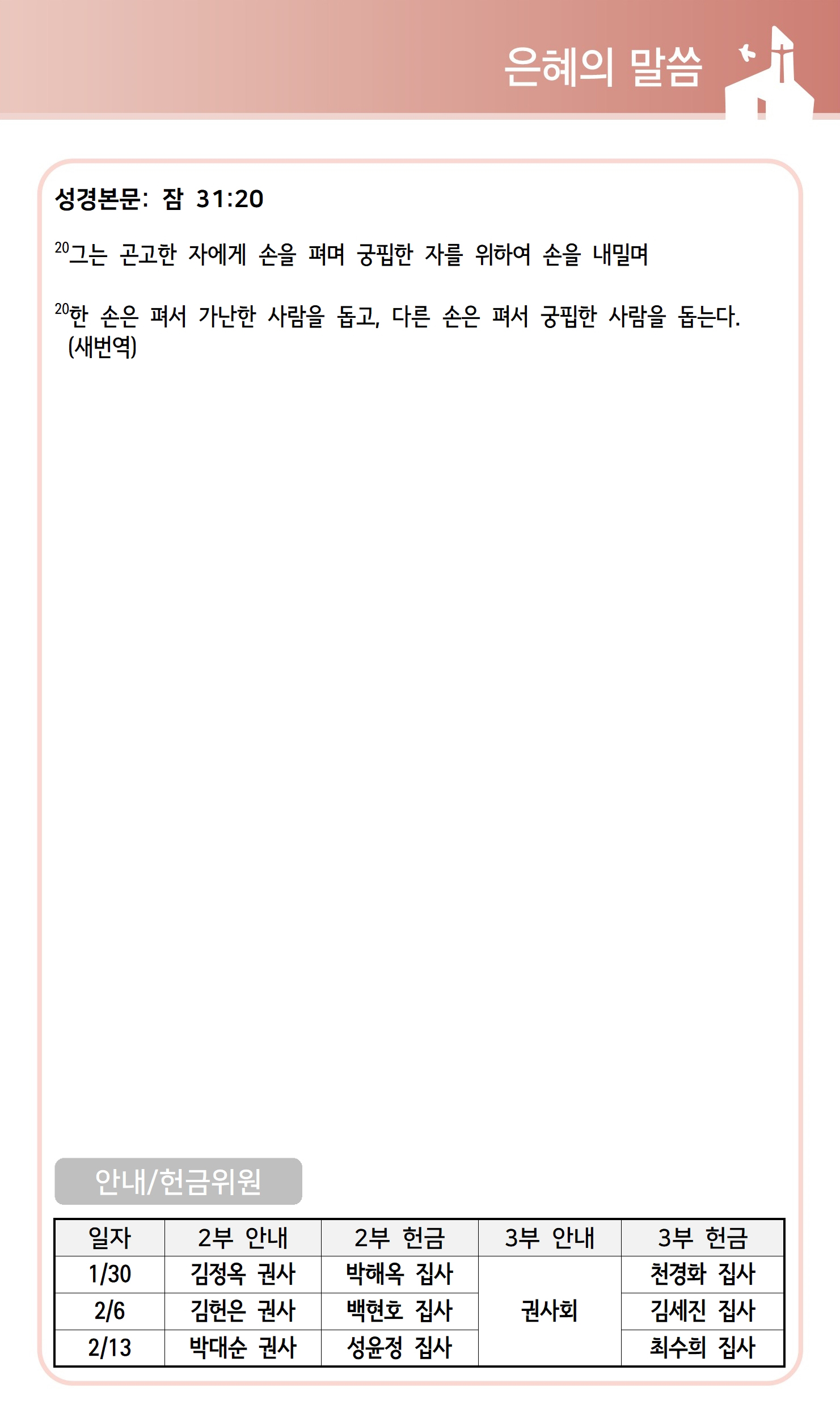 상심리교회 2022년 1월 30일 주보