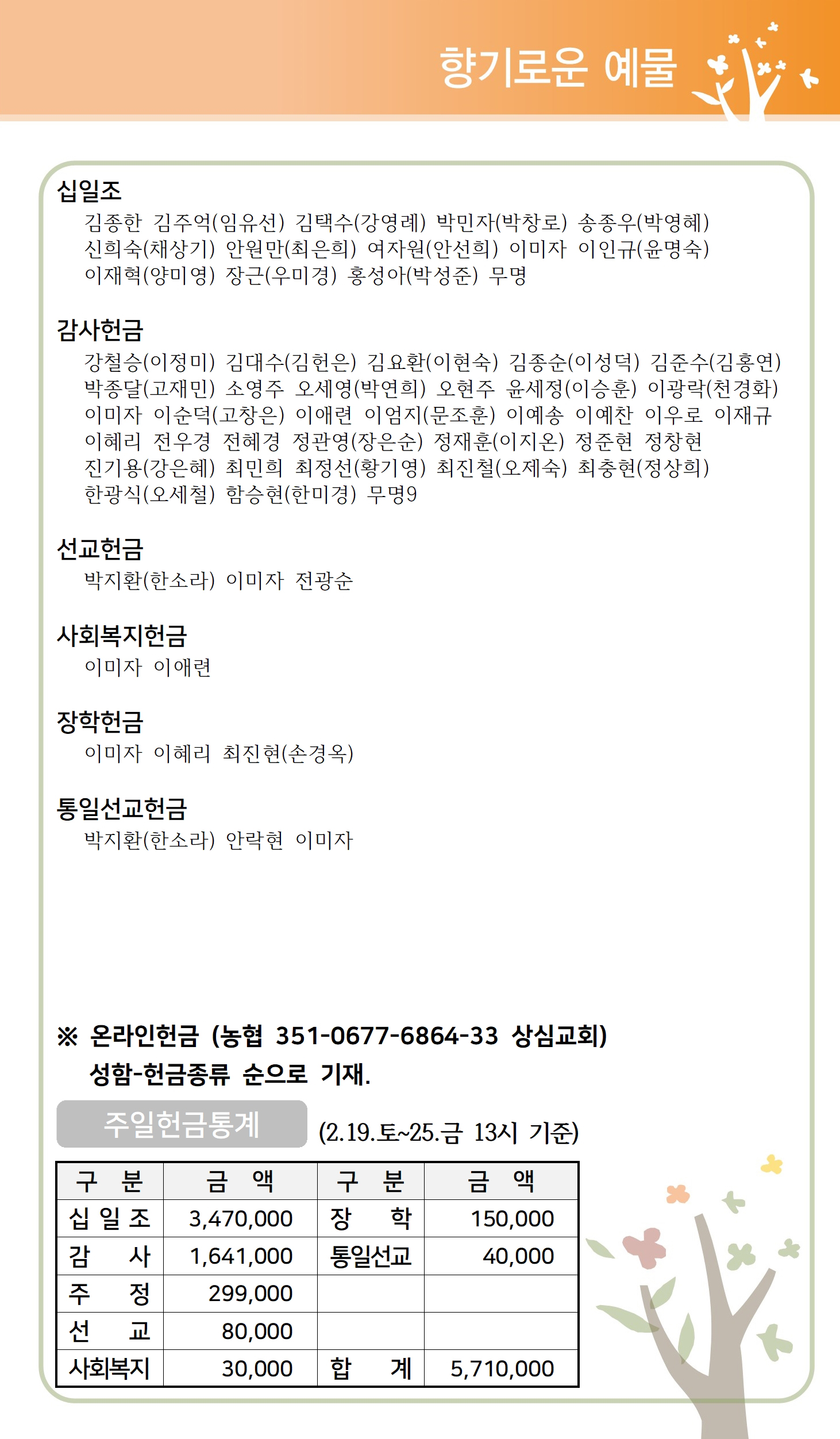 상심리교회 2022년 2월 27일 주보