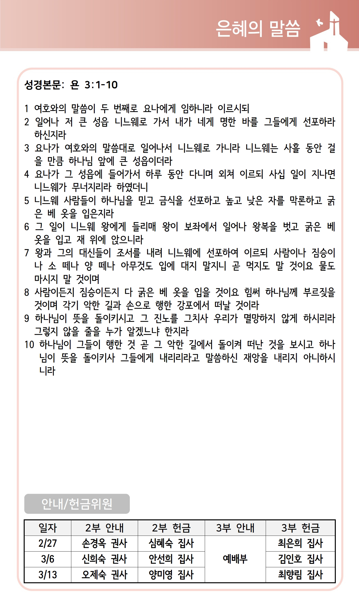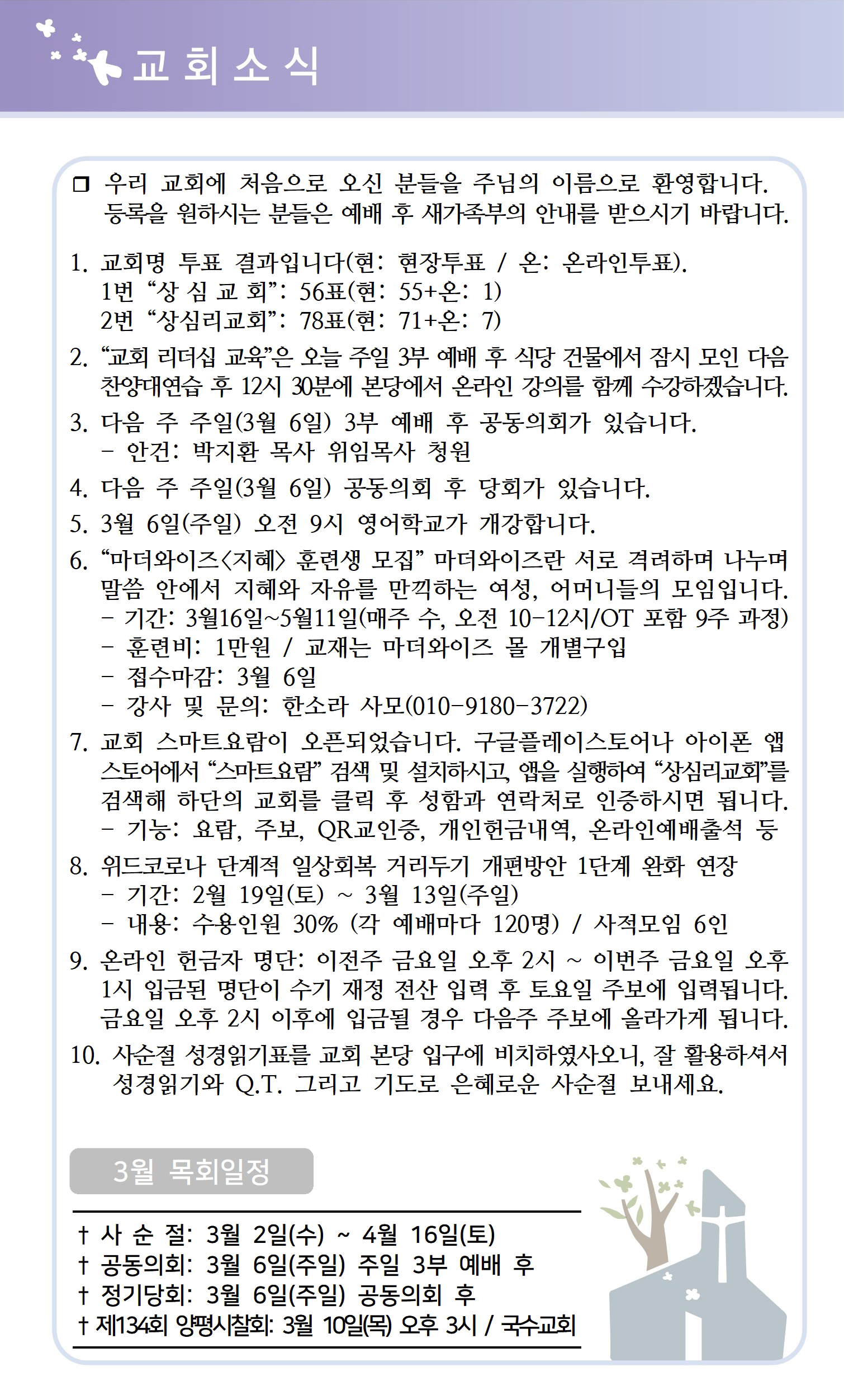 상심리교회 2022년 2월 27일 주보