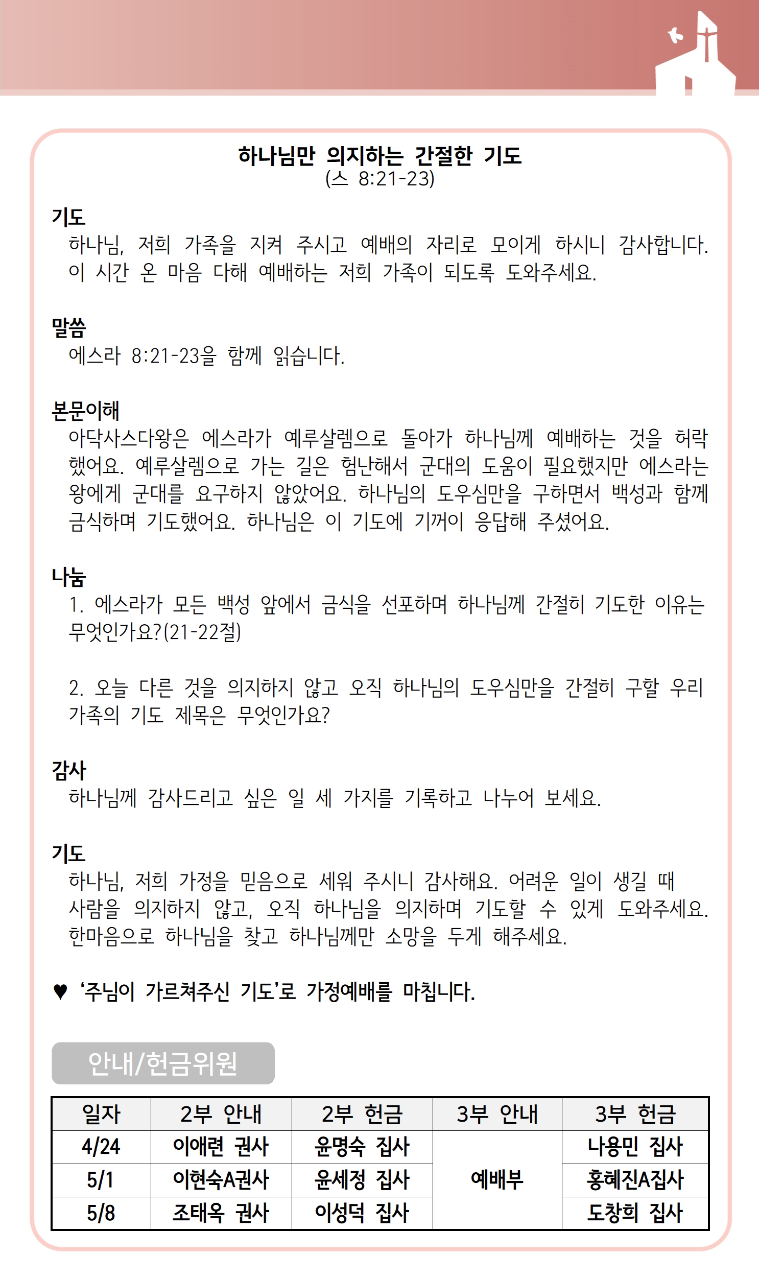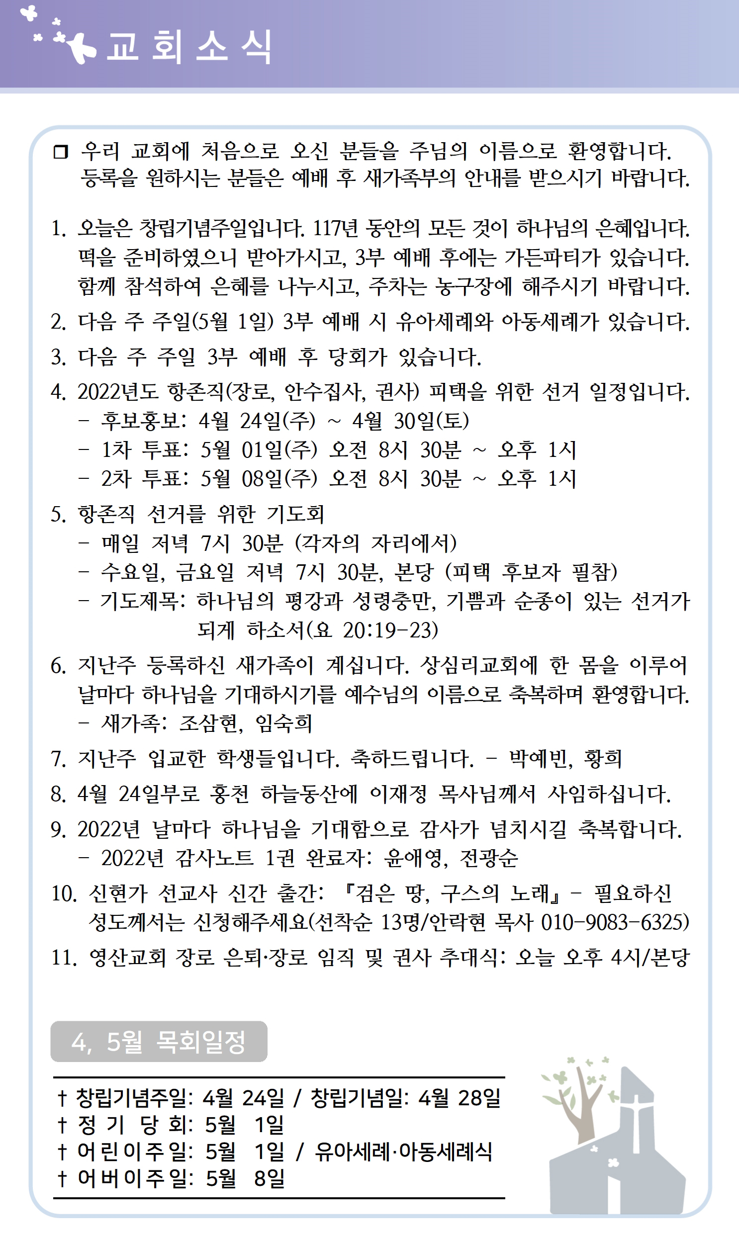 상심리교회 2022년 4월 24일 주보 - 창립기념주일