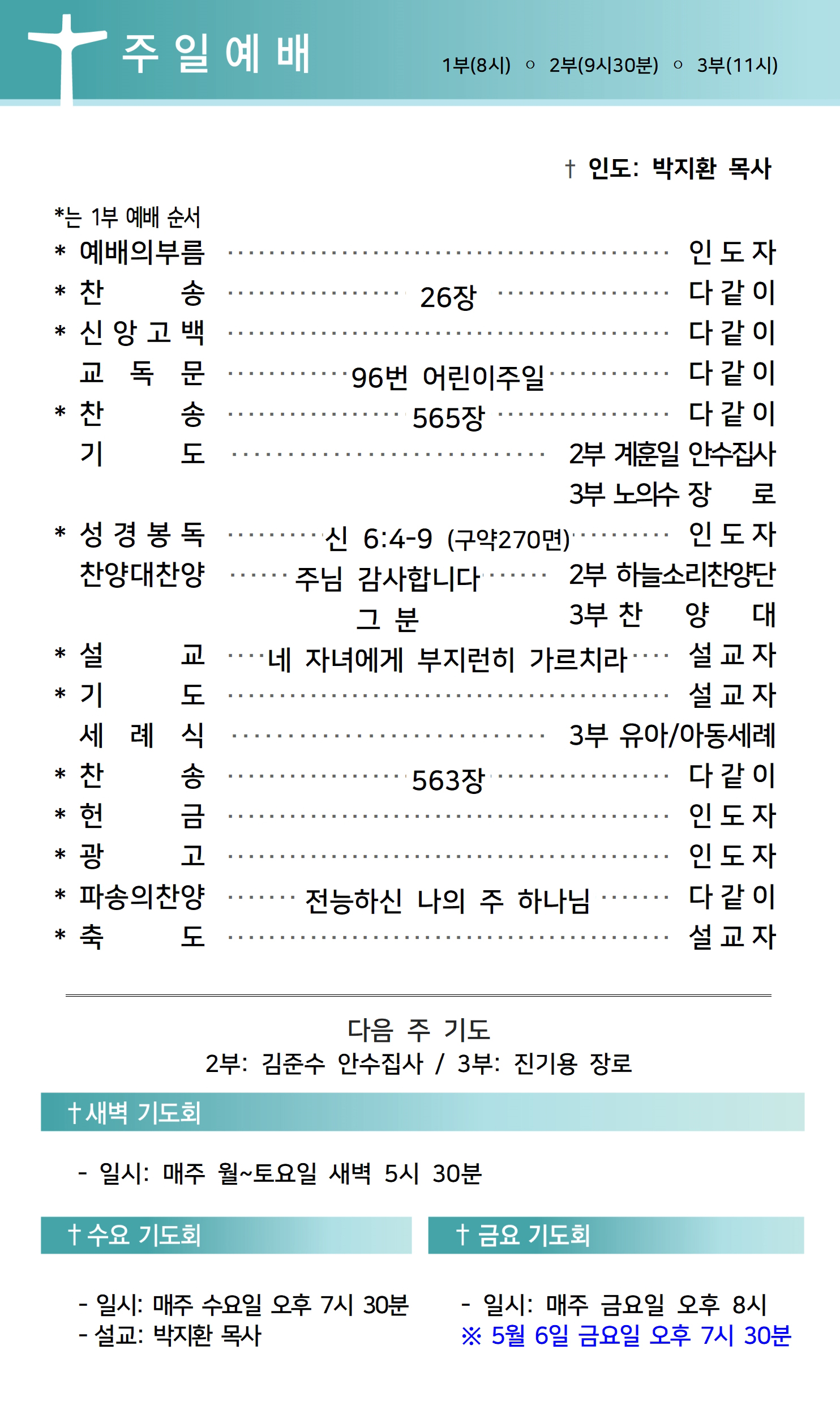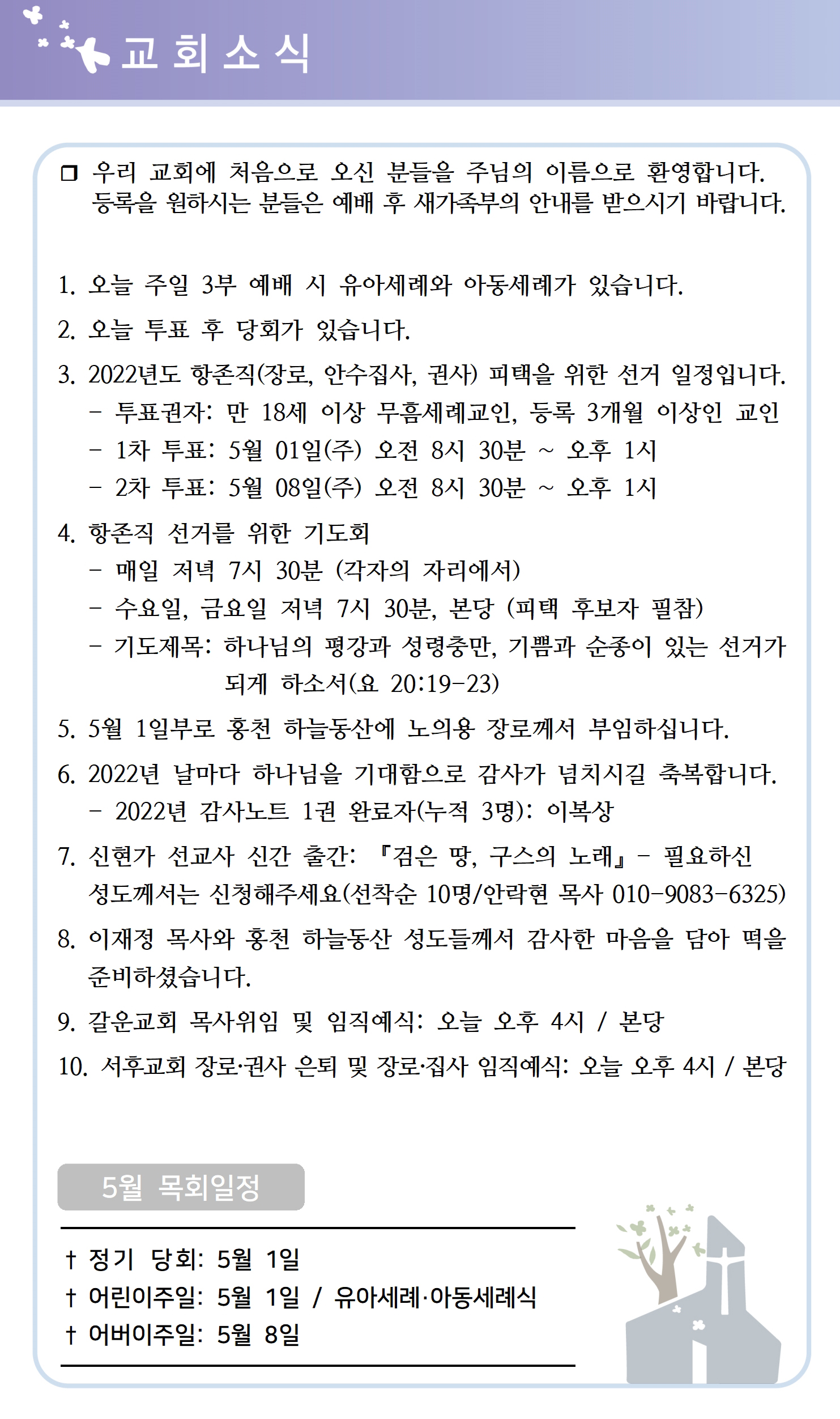 상심리교회 2022년 5월 1일 주보 - 어린이주일